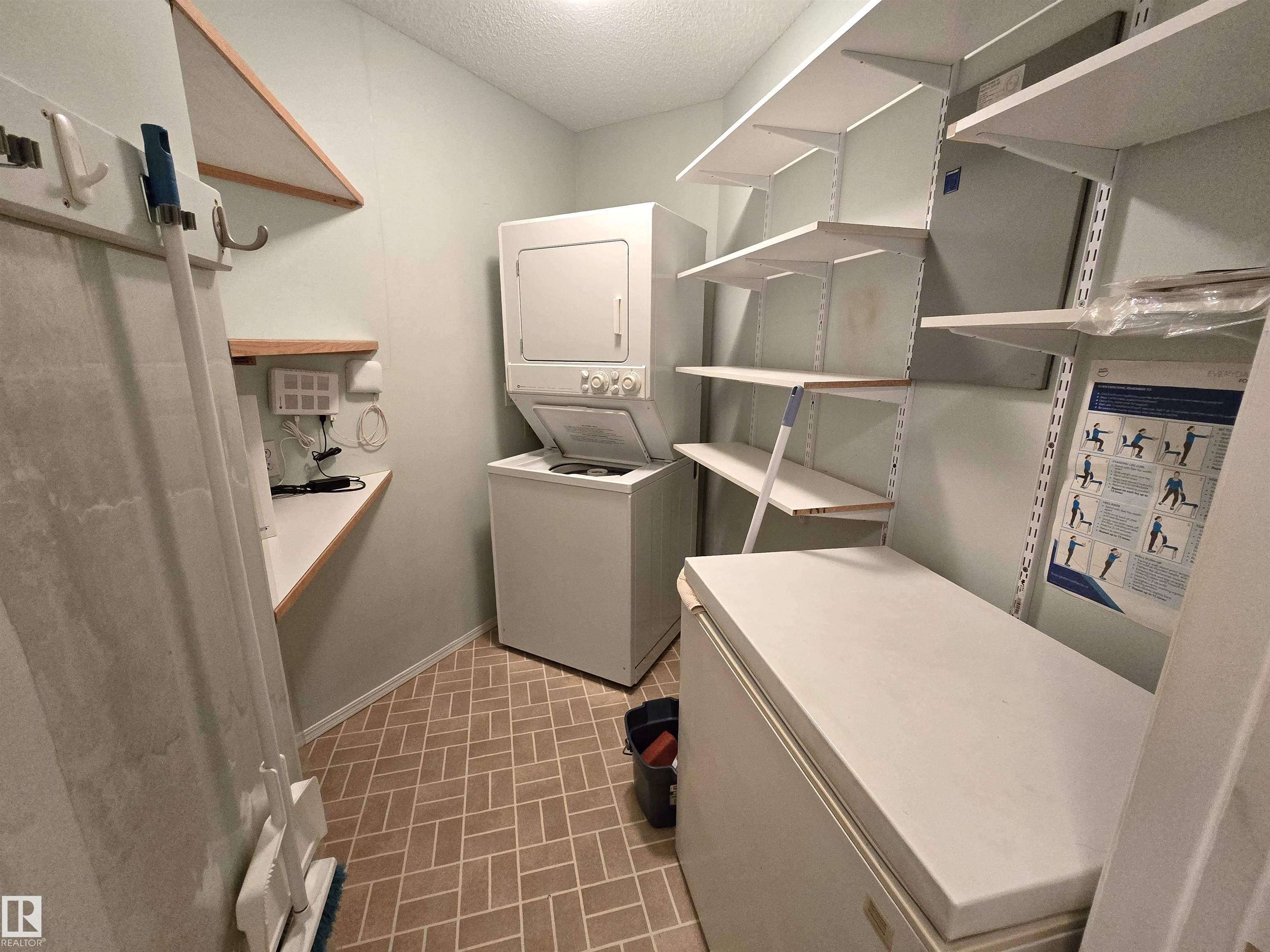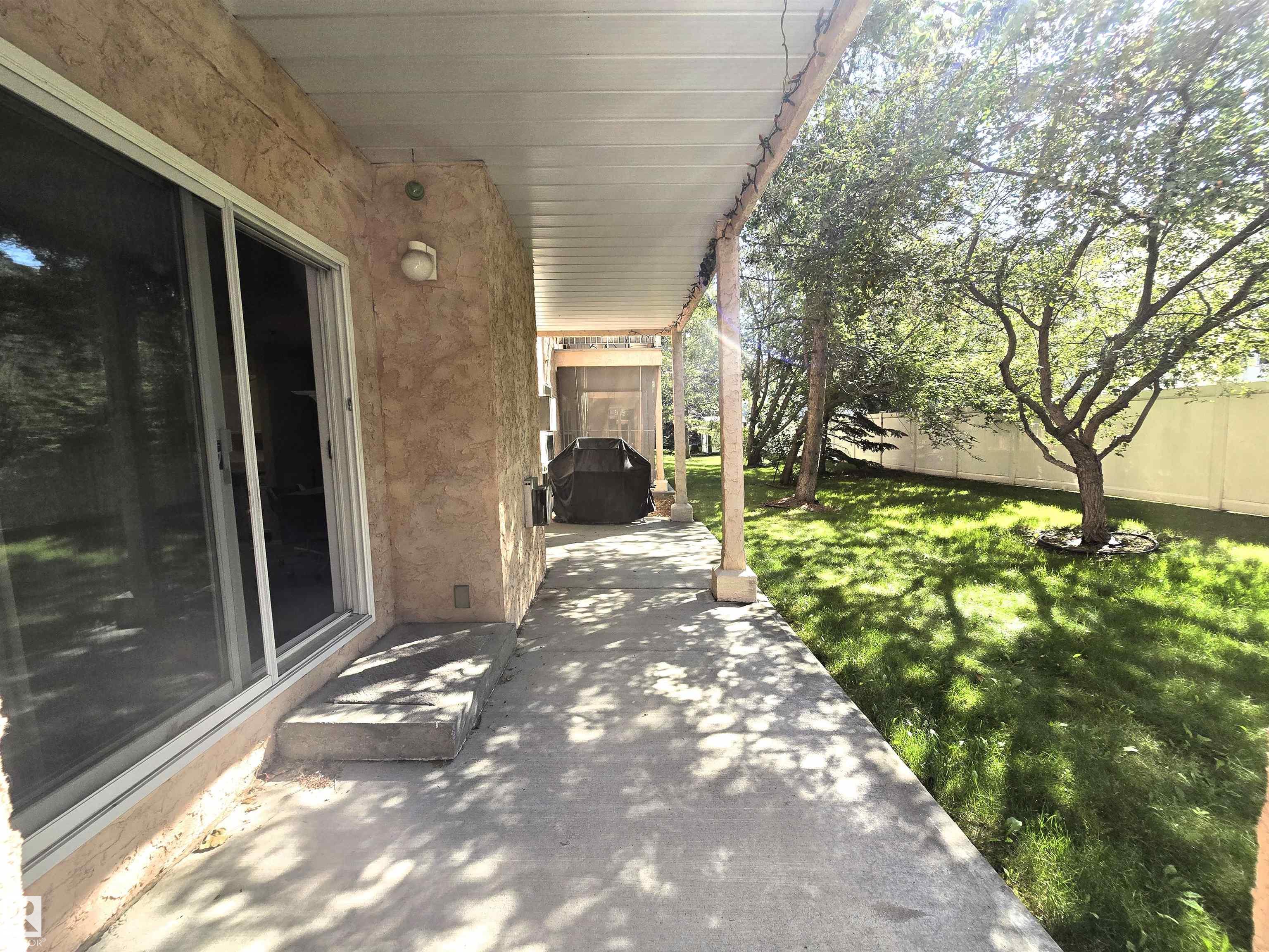 Welcome to Balmoral Court, a highly sought-after 55+, pet free, community offering comfort, convenience, and exceptional value. This spacious 1,151 SF ground floor condo features a bright, open layout with a large living room with gas fireplace that flows seamlessly to a covered patio—perfect for morning coffee or evening relaxation. The primary suite offers a large closet & 4-piece ensuite, while a second bedroom is located near the main 4-piece bath for added privacy. In-suite laundry with built-ins provides extra storage & convenience. This unit includes the rare bonus of two heated underground parking stalls both with storage lockers. Residents enjoy access to amenities, including a workshop, social spaces, BBQ/picnic areas, and a beautifully landscaped courtyard. Ideally located steps from the West Edmonton Seniors Activity Centre, and close to shops, restaurants, churches, groceries, medical, and scenic walking paths around the community pond. A wonderful opportunity to enjoy worry-free living!
