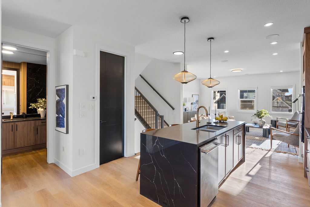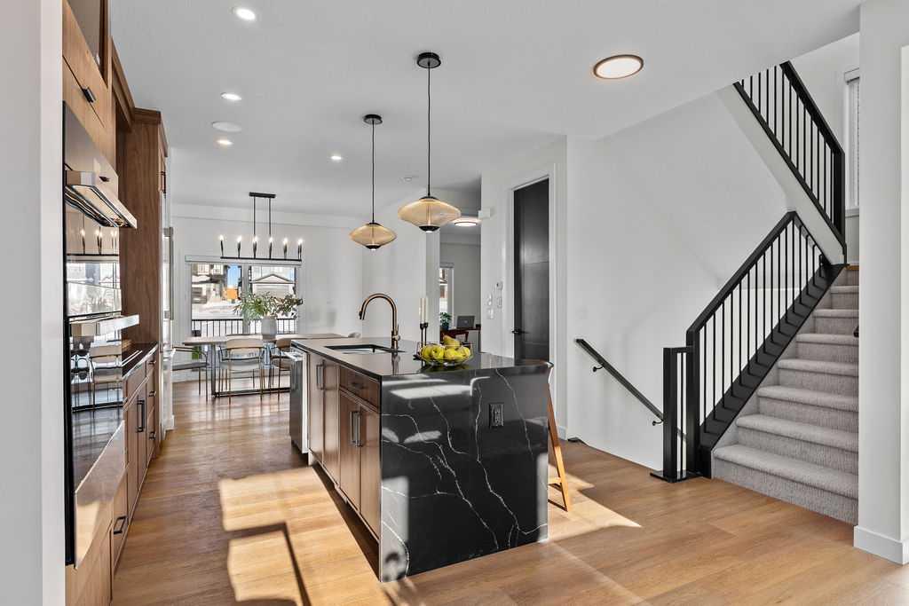 A beautifully crafted new build by Paradiso Homes, this residence in Heritage Hills offers a refined blend of modern design, functional layout, and elevated finishings throughout. With nearly 2,900 sq ft of finished living space, including a fully developed basement with a separate entrance, offering excellent flexibility for extended family or future potential. The main level is thoughtfully designed with an open concept layout that seamlessly connects the kitchen, dining, and living spaces. A chef inspired kitchen anchors the home, featuring sleek cabinetry, quartz surfaces, and a premium appliance package including Dacor, Bosch, and Samsung. The spacious living area with fireplace creates a warm and inviting setting, while a dedicated main floor office adds flexibility for remote work or study. Additional upgrades include a professionally installed security camera system, integrated wiring for sound throughout the home, and electric zebra style blinds, enhancing both comfort and modern convenience. Upstairs, the primary retreat offers a generous footprint, complemented by a walk-in closet and a well-appointed ensuite with dual vanities, a soaker tub, and a separate shower. Two additional bedrooms, a full bathroom, and a conveniently located upper-level laundry room complete the second floor. The fully developed basement adds further functionality with an additional bedroom, full bathroom, recreation space, and a secondary kitchen area, ideal for extended family, guests, or future flexibility. Situated on a 3,573 sq ft lot in the growing community of Heritage Hills, this home stands out with a sizeable backyard and desirable rear lane access, offering added flexibility, functionality, and future potential. Residents enjoy convenient access to local amenities, schools, walking paths, and major routes, including quick connectivity to both Calgary and the mountains via Highway 1A. The nearby Horse Creek Sports Park is planned to bring a future multi-sport recreational facility, pathways, and gathering spaces to the area, while a newly announced Rocky View Schools high school is also proposed for the immediate vicinity, further enhancing long term community growth and convenience. Backed by new home warranty coverage, this is an excellent opportunity to own a brand new home without the wait. Experience the difference with Paradiso Homes.. book a private showing with your favorite Realtor® today! *** MORE INVENTORY OPTIONS AVAILABLE *** Showhome Hours: Mon-Thurs 2-8pm & Sat-Sun 12-5pm