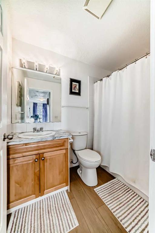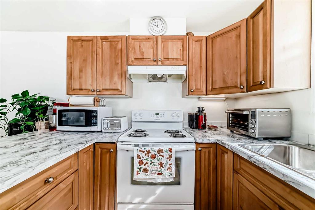 Stylishly updated 933 sq. ft. condo in an easily accessible location on Railway Street, just steps from Elizabeth Street in the heart of Okotoks. This bright unit features modern laminate flooring throughout and soft, inviting paint colours that enhances the clean, contemporary feel. The open-concept design offers a spacious living and dining area, ideal for everyday living and entertaining. The kitchen includes sleek countertops, generous cabinetry, and included appliances for added convenience. Two well-sized bedrooms are highlighted by a private primary suite with ensuite, plus a versatile second bedroom perfect for guests, family, or a home office. Includes an assigned underground parking stall. Unbeatable location close to shopping, dining, parks, and amenities—perfect for professionals, downsizers, or investors seeking low-maintenance living.