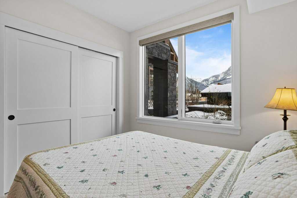 Well appointed and spacious, this lovely 2-bedroom + den/office apartment style condominium in Arnica Lodge is located steps from Spring Creek's central Plaza with shops and restaurants. Owners will enjoy lounging outside on the large private west facing patio with a gate to the courtyard and walking paths. This property is bathed in natural light and features great views to the Rundle Range, open concept living space with a gourmet kitchen, hardwood flooring, quartz counters throughout, stainless steel appliances, and a titled tandem parking stall. After hitting the trails or a day skiing owners will enjoy the roof top hot tub with views of the Three Sisters.