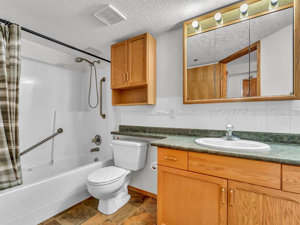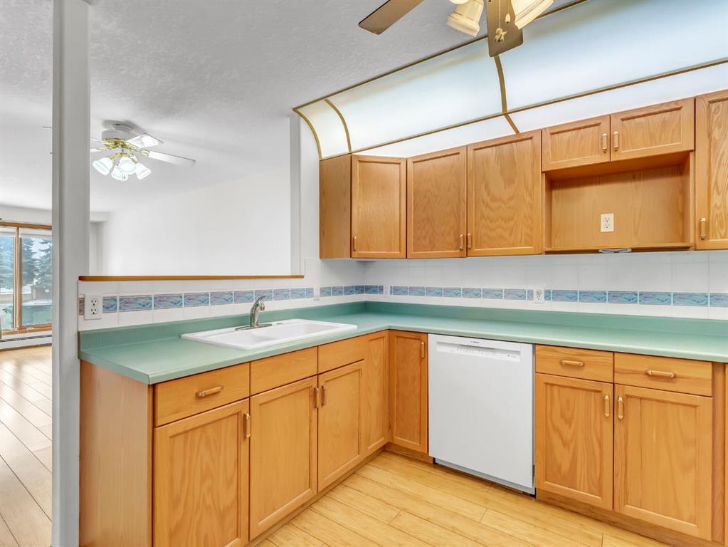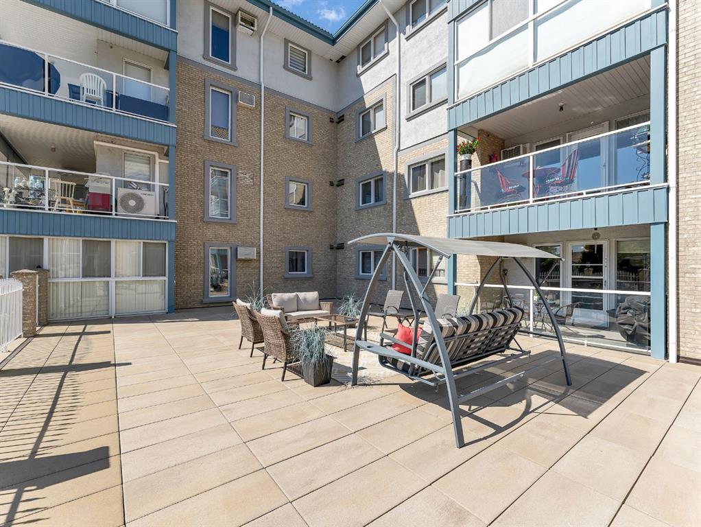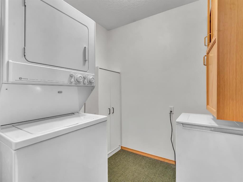 Well maintained main floor 1-bedroom unit in Grandview Village. Widely known as one of the most appealing age-restricted condo buildings in Medicine Hat, this complex is centrally located within walking distance of shopping, pharmacies, groceries, and transit. This 55+ pet-free building offers a wide array of amenities including swimming pool, fitness centre, recreation room, guest suites, outdoor community patio, car wash, mail room, security doors, workshop and more. This unit offers a bright and functional kitchen, large livingroom, spacious bedroom, 4-pc bathroom, and handy in-suite laundry room complete with washer & dryer. One assigned parking stall is conveniently located right across from the elevator. Additional outdoor parking spaces are available and can be rented inexpensively. A generous sized storage locker is found at the front of the parking stall. Reasonable monthly condo fees of $459.69 include all utilities except cable and internet.