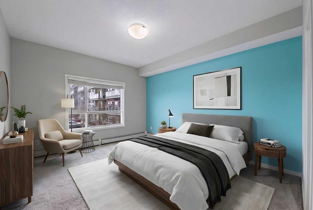 Welcome to Harvest Hills, a well-established community in NE Calgary offering an ideal blend of convenience and lifestyle, featuring Harvest Hills Lake, The Golf Centre at Harvest Hills, Harvest Hills Parks, and the Harvest Hills Community Garden, with nearby amenities including Landmark Cinemas, Canadian Tire, The Home Depot, Sobeys, and additional shopping and dining options just north of the community, while within the neighborhood to the east you’ll find Starbucks, Kinjo Sushi, and other local shops, along with excellent school options such as Ascension of Our Lord School, Northern Lights School, and Notre Dame High School; this spacious 2-bedroom, 2-bathroom condo offers a thoughtfully designed layout with luxury finishes throughout, a primary bedroom that comfortably fits a king-size bed with side tables, a primary ensuite featuring a double vanity and walk-in closet, a modern kitchen with upgraded quartz countertops and high-end finishes, and bright open living spaces, with the standout feature being the expansive wrap-around balcony that provides generous outdoor living space, ample sunlight, and endless possibilities for relaxation or entertaining—an exceptional opportunity for those looking to secure their next home in a prime Calgary location.