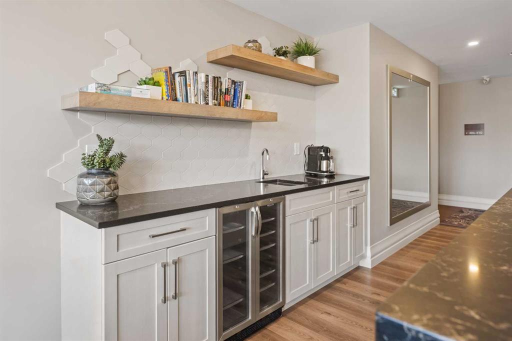 Experience uncompromising luxury at The Views, one of Calgary’s most prestigious adult living communities. This exceptional ravine-facing residence offers a rare opportunity to own nearly 1,600 sq. ft. of elegantly appointed, single-level living. Expansive floor-to-ceiling windows frame the breathtaking, unobstructed vistas, filling the home with natural light and showcasing the beauty beyond. Step onto your oversized private terrace - one of only a select few of this scale within the building - and take in the sweeping views of the Bow River Valley and the serene surrounding ravine. This is refined living at its finest, where tranquility, exclusivity, and sophistication meet. The thoughtfully designed open-concept layout is ideal for both everyday living and entertaining. At its heart is a chef’s kitchen that leaves no detail overlooked, featuring an oversized island, elegant cabinetry, quartz countertops, and an exceptional appliance package including a Sub-Zero refrigerator, a Wolf induction cooktop, a built-in Wolf wall oven with a microwave above, an ASKO dishwasher, and an upgraded pot filler. A spacious walk-in pantry ensures ample storage and effortless organization. The primary suite is a true retreat, anchored by a large window capturing stunning views. The spa-inspired ensuite offers a soaker tub, a walk-in shower with an incorporated bench, a double vanity, custom built-ins, and heated flooring for the ultimate comfort. A convenient pass-through panel provides direct access to the adjacent laundry room, complete with a sink and additional storage. An enclosed den with custom shelving functions beautifully as a home office or a reading room, and can accommodate a Murphy bed for guests. The bright second bedroom, currently used as a craft room, features direct access to the private terrace. Enjoy complete peace of mind with true lock-and-leave living in this secure community. Your titled, heated parking stall and private storage locker, conveniently located on the same level as the suite, add everyday convenience. Residents also enjoy exclusive access to premium amenities, including a fitness centre complete with an infrared sauna, a 3D golf simulator, an owner’s lounge, and beautifully designed shared outdoor patio and courtyard areas, all just steps from the protected Paskapoo Slopes natural reserve. Shopping, dining, and daily conveniences at 85th Street SW and Aspen Landing are just minutes away, while Bowness Park and the Bow River pathway system offer nearby options for outdoor recreation. With easy access to the Trans-Canada Highway, weekend escapes to the mountains are effortless, and Stoney Trail ensures seamless connectivity throughout the city. Residences of this calibre at The Views are rarely available. Book your private showing today.