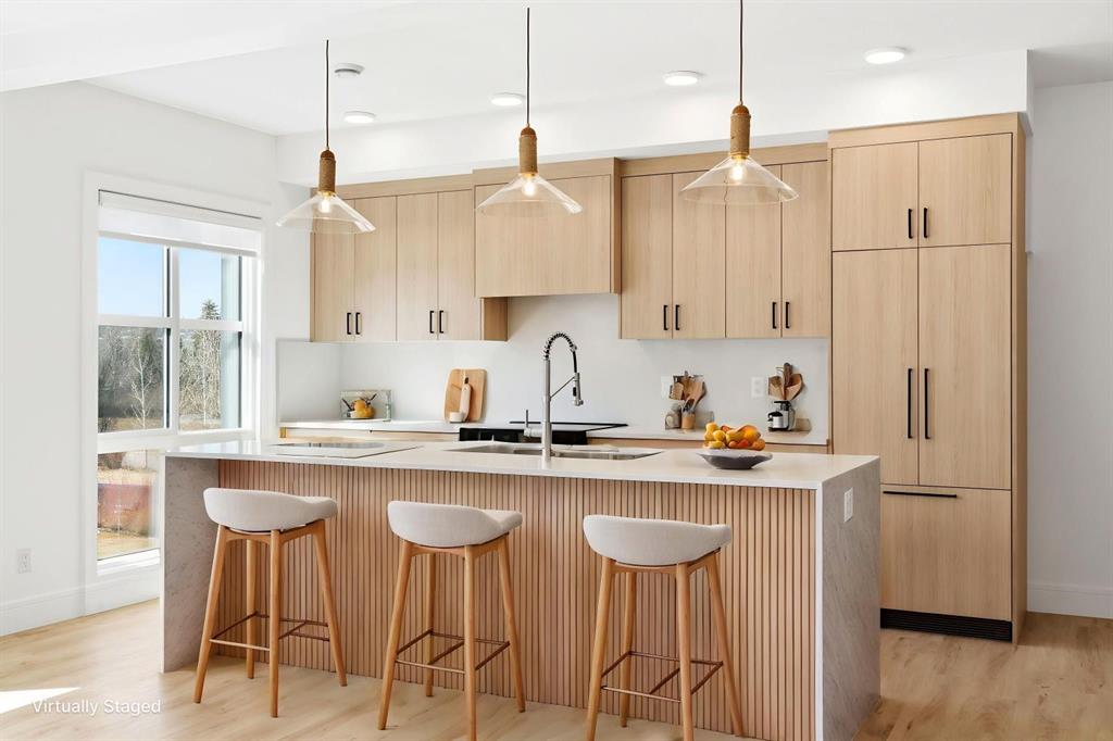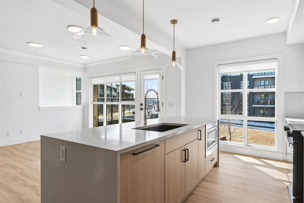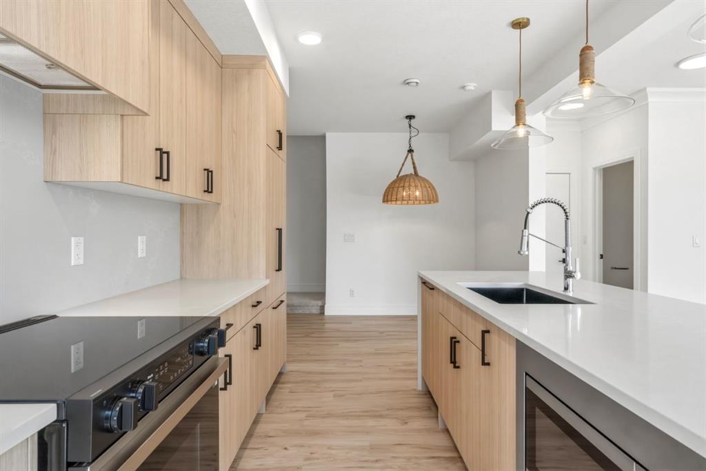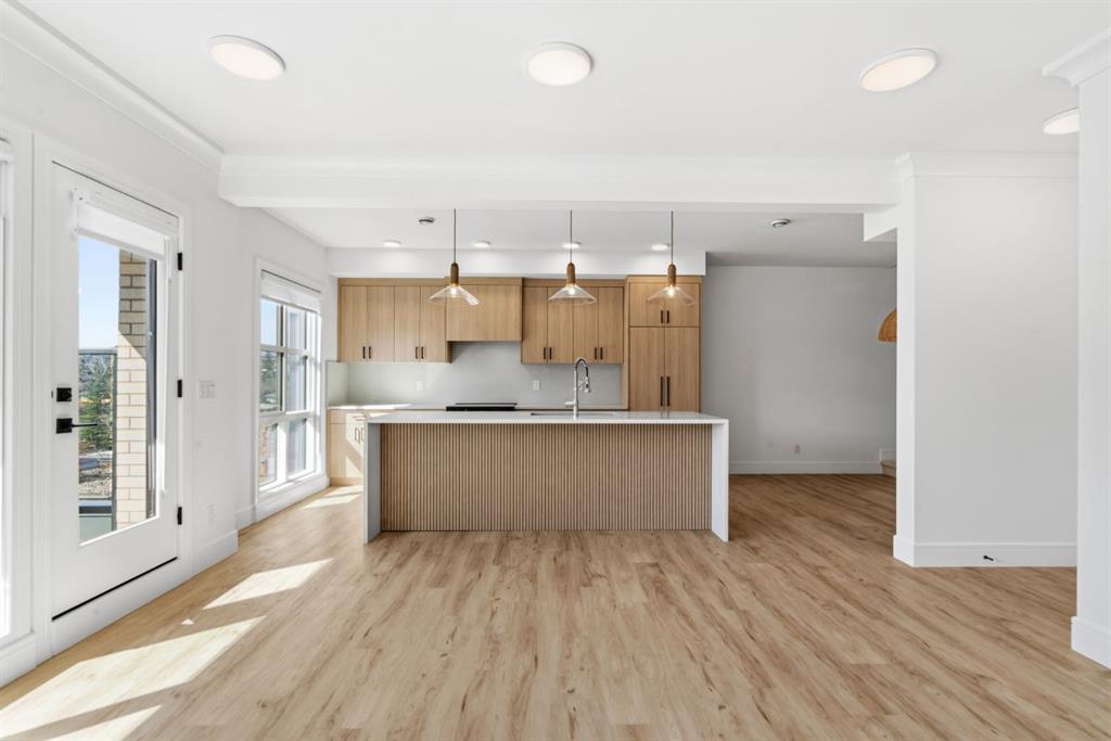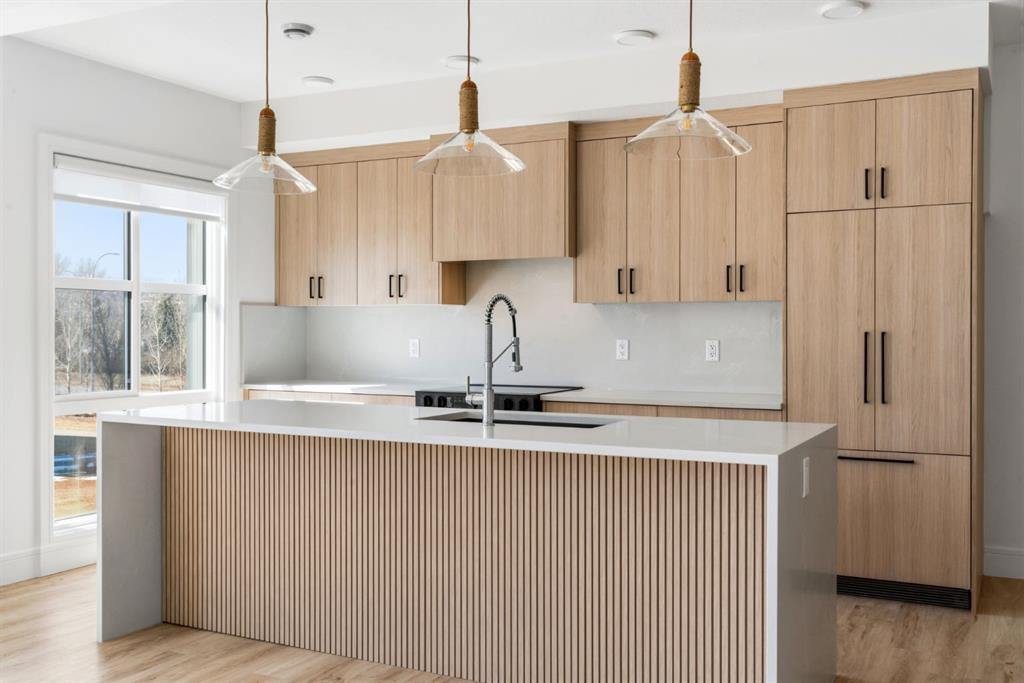 MODERN ELEGANCE IN CALGARY’S VIBRANT UNIVERSITY DISTRICT! This beautifully appointed townhome by Rohit Homes is a masterpiece of craftsmanship and contemporary style, offering an array of high-end upgrades that elevate everyday living to something truly special. Welcome to Dean’s Landing one of Calgary’s most exciting and sought-after communities. Step inside to discover beautiful luxury vinyl plank flooring, setting the tone for modern sophistication from the moment you arrive. The open-concept layout is flooded with natural light, enhanced with ample pot lights that illuminate every thoughtfully curated detail. At the heart of the home is a kitchen where form meets function white quartz countertops cascade in a stunning waterfall design, complemented by a matching quartz backsplash for a seamless, luxurious finish. The built-in refrigerator and dishwasher are concealed within cabinetry for a sleek, cohesive aesthetic, while a powerful hood fan integrates seamlessly into the overall design. Step out onto your private balcony, equipped with a BBQ gas line and rough-in for AC designed for year-round outdoor enjoyment whether you’re hosting or simply unwinding after a long day. Upstairs, the primary bedroom retreat is a true sanctuary, featuring a stunning ensuite with double vanities and the same refined quartz finishes found throughout the home. Two additional bedrooms offer exceptional versatility, with the centre bedroom boasting its own private balcony a rare and refreshing bonus. Convenient upper-floor laundry rounds out the upper level for effortless daily living. A single attached garage provides secure, practical parking with the added advantage of a conveniently located electrical panel making a future EV charger installation a breeze. Beyond your front door, the University District delivers an unmatched urban lifestyle with trendy cafes, boutique shops, scenic parks, an off-leash dog park, and a cutting-edge fitness centre. Minutes from the University of Calgary, Alberta Children’s Hospital, and Market Mall, this location offers unparalleled convenience for students, professionals, and families alike. Whether you’re planting roots or building your portfolio this is a lifestyle opportunity not to be missed.