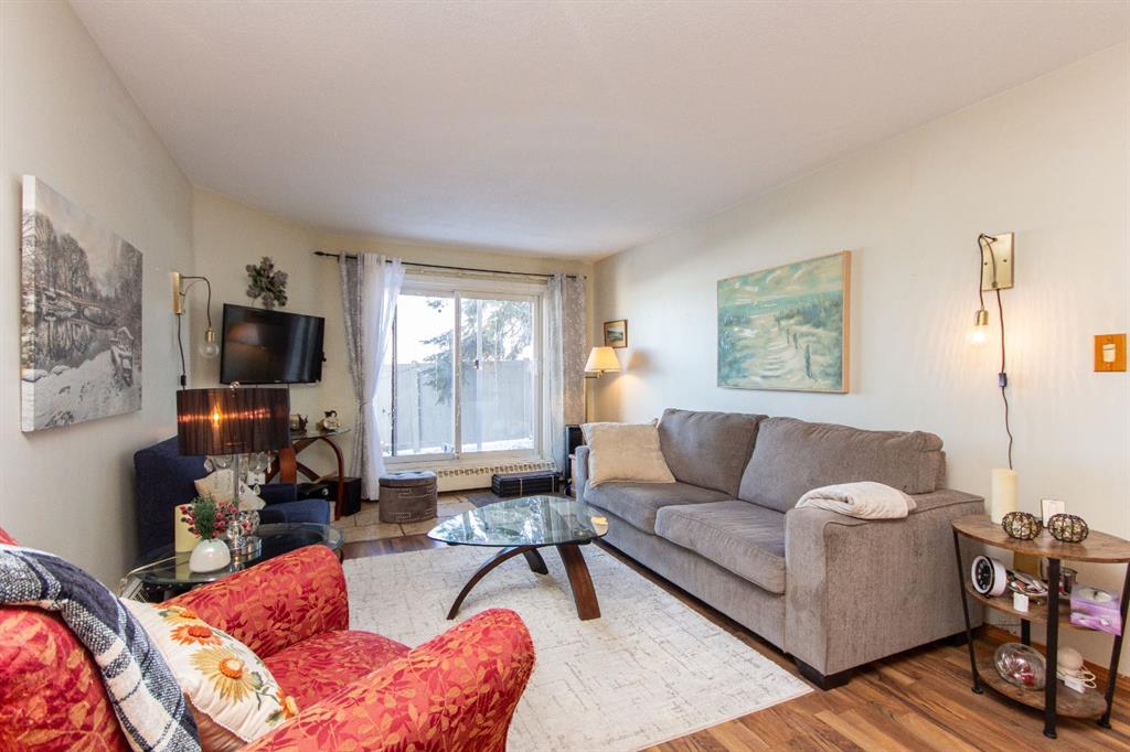 Situated in beautiful Clearview Meadows, this well kept 2 bedroom, 1 bathroom corner unit condo is just steps away from parks, playgrounds, scenic walking paths, and all the convenient shopping amenities of Clearview Market. Stepping inside this ground floor unit, the kitchen is located just off the entryway and offers a compact and functional layout with plenty of cabinetry and matching white appliances. The adjoining dining space easily fits a full sized table and flows seamlessly into the bright, and generously sized living room which features low maintenance laminate flooring. Large patio doors bring in plenty of natural light and provide direct access to your private ground level patio with no neighbours beside you for added privacy. Two comfortably sized bedrooms including a spacious primary are complemented by an updated 4 pce bathroom. There is also in-suite laundry and storage for added convenience. Condo fees are $478.75/month and include heat, water, sewer, trash, professional management, parking, insurance, and snow removal, making for simple and low maintenance ownership. Bylaws allow for 1 pet per unit, no more than 14" at the shoulder and board approval is required. This unit comes with one assigned parking stall, and additional parking stalls can be rented for $35/mo. The building has also seen a number of important updates over time including roof replacement, updated siding, a redone parking lot, vinyl fencing, and new patio doors. This clean and affordable unit is a great opportunity for first time buyers, downsizers, or investors on Red Deer's desirable SE side!