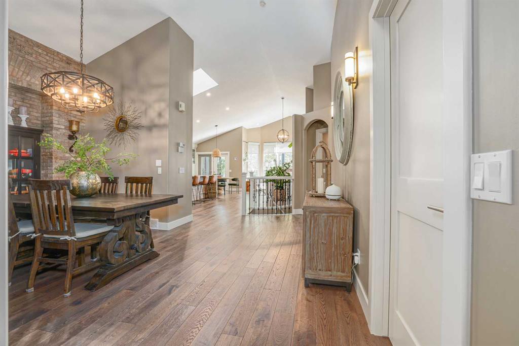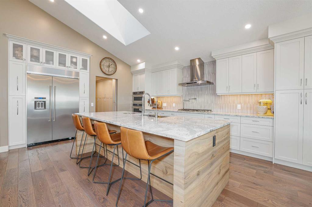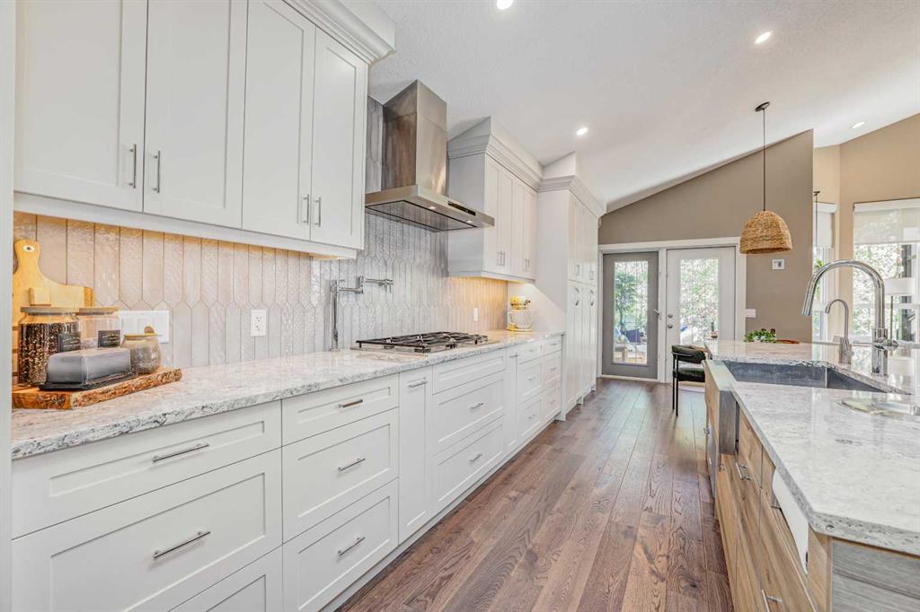 OPEN HOUSE CANCELLED Fully Renovated Walkout Bungalow with Exclusive Lake Access – McKenzie Lake Discover a rare opportunity in the prestigious McKenzie Lake community with this stunning, fully renovated walkout bungalow. Located on a quiet street with no through traffic, just steps from the ridge and Fish Creek Park, this home offers a serene lifestyle with luxury and nature at your doorstep. Inside, a thoughtfully reimagined layout, flooded with natural light, welcomes you. Vaulted ceilings, expansive windows, and wide-plank engineered hardwood floors create an open, inviting atmosphere. The custom kitchen features full-height premium cabinetry, quartz countertops, and a handcrafted wood-wrapped island—a perfect blend of style and function. Adjacent to the kitchen is an east-facing, covered deck with 12-foot-high ceilings, providing a minimum three-season outdoor living space. Outfitted with a custom Suncoast enclosure and motorized retractable screens, this space is ideal for relaxing or entertaining year-round. A built-in gas line for a fire table enhances the comfort and ambiance. The primary suite is a peaceful retreat, generously sized to accommodate rest and rejuvenation. The fully renovated ensuite boasts heated tile floors, a glass walk-in shower, his and hers sinks, and modern finishes. A custom walk-in closet adds practical luxury. Another bedroom and 2 piece bathroom complete this level! The finished walkout basement continues the home’s upscale feel with in-floor heating throughout. This spacious lower level offers 2 more bedrooms, another bathroom and versatile areas for lounging, fitness, or media. A climate-controlled wine cellar and tasting area add a unique touch of refinement. Additional features include: Heated attached garage with epoxy floors and slat-wall storage EV charging station Central air conditioning for year-round comfort Programmable electronic blinds throughout Underground sprinkler system for easy lawn care NO poly B , and the cedar shake roof in on a regular maintenance plan Private McKenzie Lake access – enjoy exclusive swimming, skating, and community amenities year-round Every detail has been carefully chosen to blend modern luxury with effortless living. Minutes from nature and urban conveniences, this home is one of McKenzie Lake’s finest offerings. Don’t miss your chance to own this exceptional walkout bungalow with lake access.