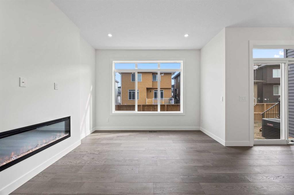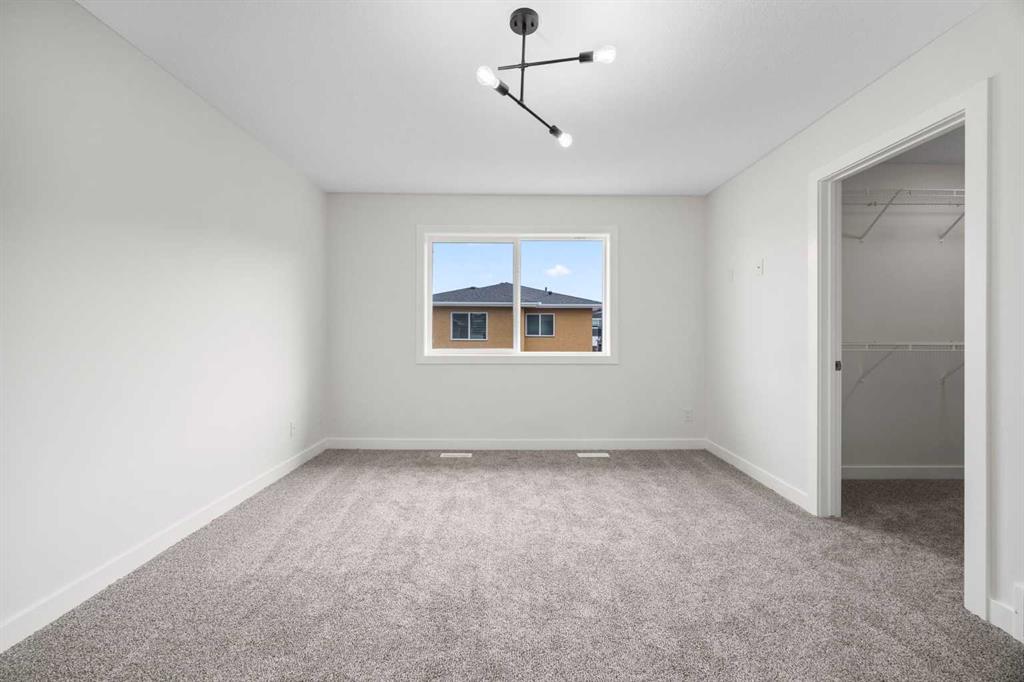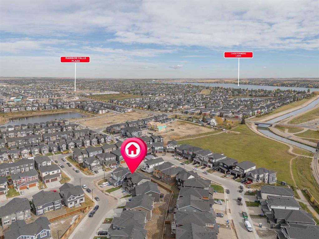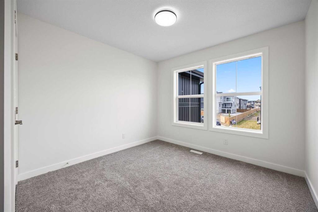 Welcome to this brand new semi-detached home with a front double attached garage, perfectly located in the desirable community of Waterford. Designed with style and functionality in mind, this home boasts numerous upgrades throughout. Step inside to a bright, open foyer leading to the main floor, featuring 9-foot ceilings and beautiful engineered hardwood throughout. The open-concept kitchen showcases quartz countertops, stainless steel appliances, upgraded light fixtures, and painted cabinetry to ceiling height. It flows seamlessly into the spacious living room with an electric fireplace and dining area overlooking the large backyard — ideal for summer BBQs and outdoor entertaining. A convenient 2-piece bathroom completes the main level. Upstairs, the home offers three generously sized bedrooms, each with ample natural light and closet space. The primary suite is a true retreat, featuring a spacious walk-in closet and a luxurious ensuite with dual vanities. The additional bedrooms are perfect for family, guests, or a home office, and share a well-appointed 4-piece bathroom. Completing the upper level is a full-size laundry room for ultimate convenience. The unfinished basement includes a separate side entrance, providing flexibility for a future living space, guest suite, or investment opportunity. Tucked away on a quiet street, this home is just minutes from all the amenities Chestermere offers, including schools, parks, shopping, and the lake