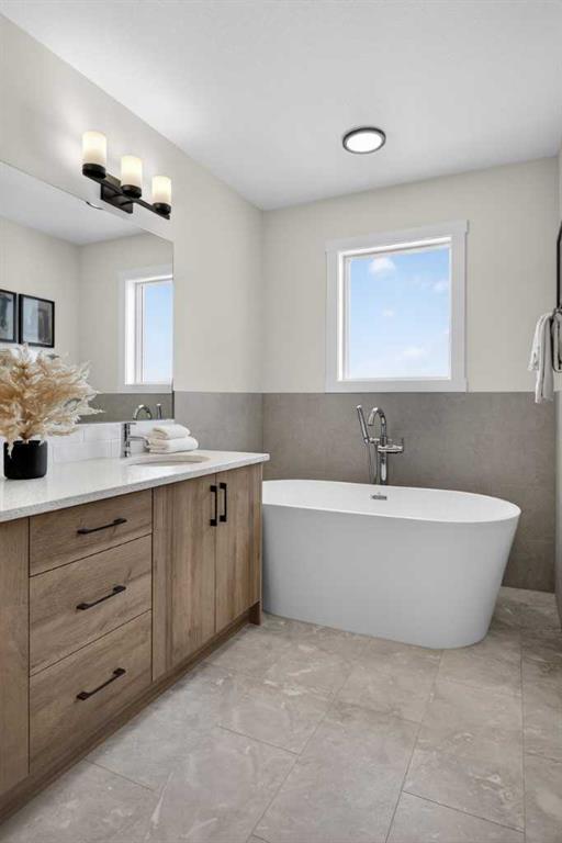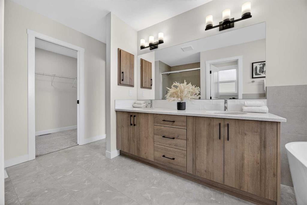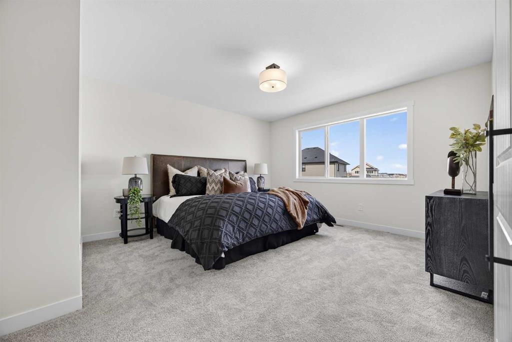 Welcome to the “Leo” a beautifully designed 3-bedroom, 2.5 bathroom brand new home offering over 2000 sq ft of finished living space. Step inside to a bright, inviting main floor featuring luxury vinyl plank flooring that spans the entire level and is complemented by 9-foot ceilings. The chef's kitchen showcases sleek cabinetry with stylish black hardware, paired with a crisp white tile backsplash, elegant quartz countertops, and stainless steel appliances. The living room features a stunning floor-to-ceiling tiled feature wall, creating a beautiful focal point. Adjacent to the living space, the dining area is ideal for entertaining and flows seamlessly to the outdoors. Completing the main floor is a practical mudroom just off the double-attached garage, a spacious pantry, and a convenient powder room. Upstairs, you'll find a central bonus room that provides separation between the primary suite and the secondary bedrooms, offering both comfort and privacy. The primary retreat is generously sized and features a spa-inspired ensuite with dual sinks, a relaxing soaker tub, and an oversized shower, as well as a truly impressive walk-in closet. A full bathroom complements two additional well-sized bedrooms, while the upstairs laundry room adds everyday convenience. The unfinished basement, with 9-foot ceilings, offers a blank canvas for your future development ideas. Bayview is a beautiful community with parks, benches and pathways that meander throughout the community and along the canals. Kids and adults alike will enjoy the outdoor basketball nets, gym, amphitheatre and tennis courts that will convert into a skating rink in the winter. Come and see all the amenities that Bayview has to offer for yourself! *RMS has been applied to construction drawings provided by the builder. Taxes to be assessed. Open House Sat/Sun, March 21/22 1-3 pm.
