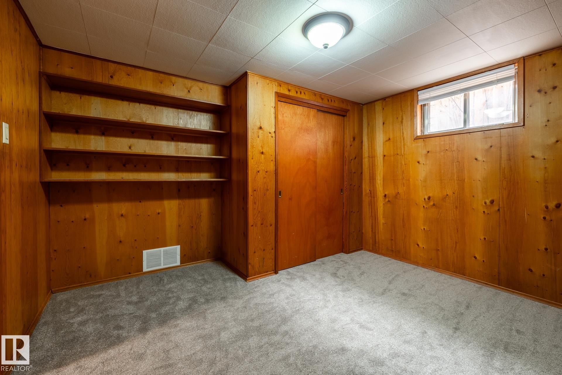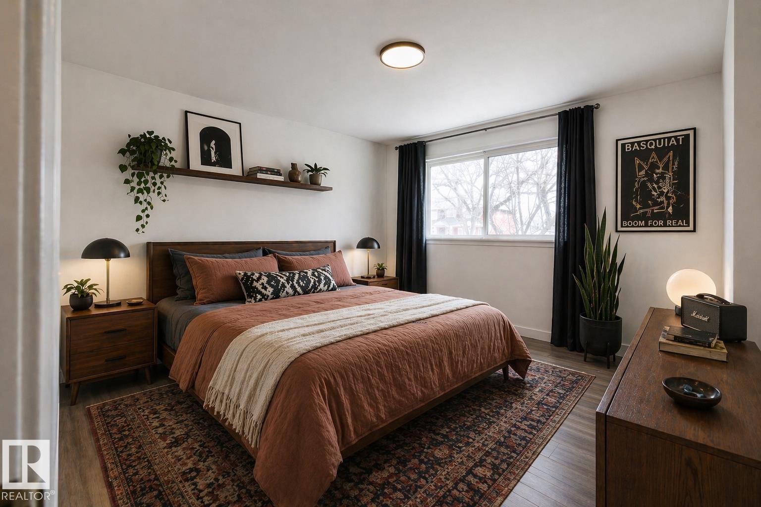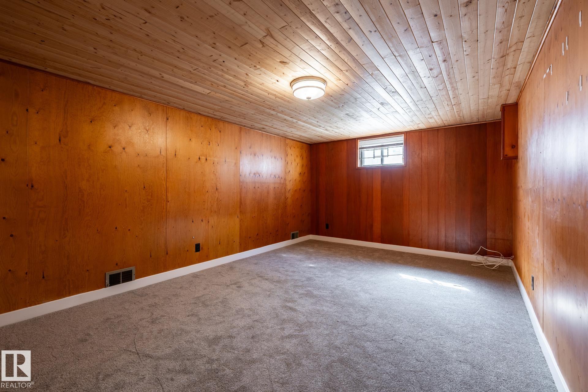 Impeccably maintained 1952 bungalow in Westmount offering over 1,600 sq ft of finished living space on a 6,724 sq ft lot. The home holds the details that define its era—arched openings, decorative ceilings, and character that has been intentionally preserved. Major updates are complete, including flooring, lighting, paint, roof, furnace, hot water tank, electrical, plumbing, and bathrooms. Two bedrooms on the main floor with bright living and dining spaces, a functional kitchen, pantry, and full bath. The lower level adds two more bedrooms, a large rec room, laundry, and a half bath, with a separate entrance for future flexibility. West-facing backyard with mature trees creating full summer privacy, a fire pit, and new cedar fencing. Detached garage with covered carport and rear lane access. Set in Westmount, on a quiet treelined street, steps to everything one could ever want.