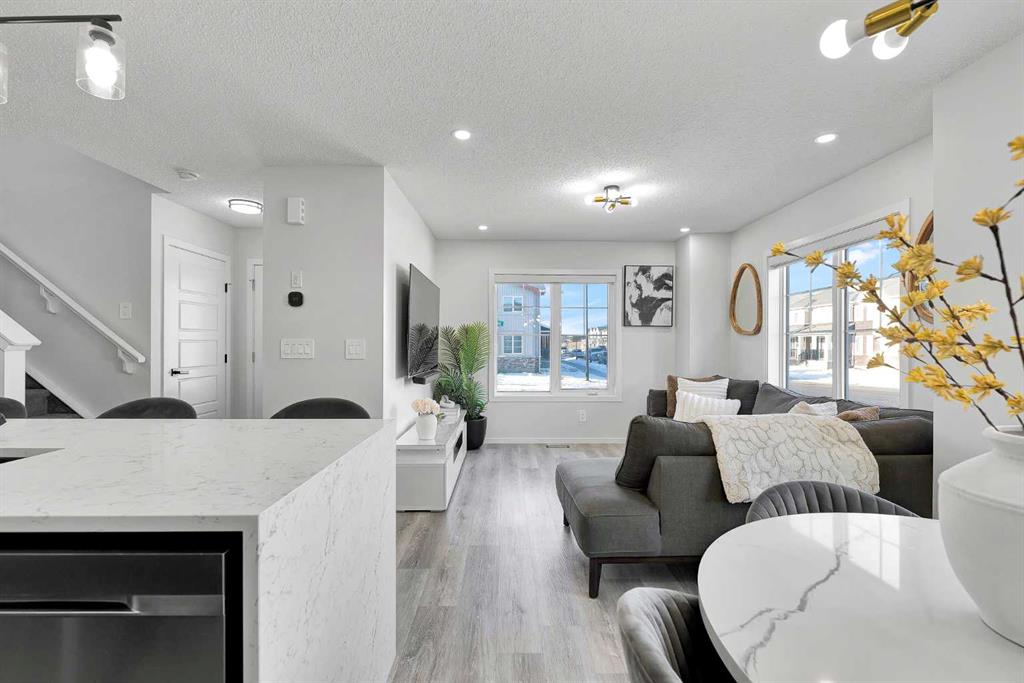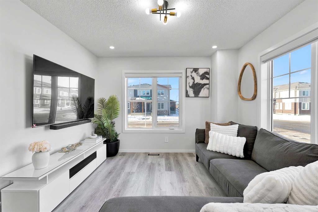 (( OPEN HOUSE SUNDAY FEB 1ST 1:00 - 3:00 PM)) Located in the family-centric community of Carrington, this nearly new and impeccably maintained 3 Bed 3 Bath, air conditioned home, is the one you’ve been waiting for. Welcome to 11 Carringham Way NW! This unique corner unit features a private side entrance, offering the feel and look of a detached home. Upon entry, the main floor showcases impressive upgrades, including luxury vinyl plank flooring, a custom blind package, and stylish light fixtures. The kitchen is designed for both everyday living and entertaining, featuring a large quartz island, upgraded appliances, and ample cabinetry to meet all your storage needs. The open-concept layout includes a dedicated dining area and a bright front living room, perfect for gatherings. Extra windows throughout this corner unit flood the space with natural light thanks to its desirable west exposure. Upstairs, the primary bedroom provides a comfortable retreat with a walk-in closet and a four-piece ensuite—an ideal space for Mom and Dad as well as a private balcony that benefits from those sunny SW Mountain views. Two additional bedrooms, another four-piece bathroom, and convenient upper-level laundry complete the second floor. The basement is unfinished and ready for your creative vision. Outside, this oversized corner lot offers the option to fence the west and northwest sides, creating a private outdoor space. The insulated double attached garage is a welcome feature during Calgary’s cold winter months. Ideally located close to parks, playgrounds, shopping, and schools, with quick access to Stoney Trail and Deerfoot Trail. A future LRT extension and additional commercial development further enhance the long-term value of this fantastic home. Book your private showing today!