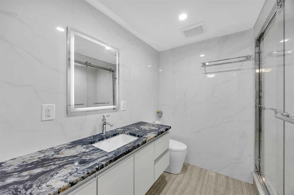 Fully renovated 4-level split in West Haysboro offering over 2,500 sq. ft. of living space. A legal walk-out basement suite, ideal for second family, provides a full kitchen, living room with a 72” electric fireplace, two bedrooms, a 3pc bathroom, and in-floor heating. An open-concept kitchen highlights the main floor, featuring oversized cabinets, stainless steel appliances, granite counters, an eating bar, and a pantry. Adjacent to the kitchen is a living room with a second 72” electric fireplace, built-in wall units, and a custom tiled feature wall. The formal dining area comfortably fits a large family table and includes a built-in bar. Upstairs, the master retreat includes a walk-in closet and a 5pc spa-inspired ensuite complete with dual sinks, a glass shower with bench and water jets, a soaker tub, and heated floors. A second spacious bedroom completes the upper level. Notable upgrades include aluminum windows with retractable screens, new doors with multi-point locking systems, Alfa tile flooring, granite counters throughout, custom closet organizers, a newer Kinetico water softener, and a newer high-efficiency furnace. Smart home additions such as LED lighting, a smart thermostat, and code/chip/fingerprint deadbolts enhance convenience and security. Outdoor living is just as impressive with a west-facing yard featuring low-maintenance landscaping, a patio, hot tub, storage shed, and natural stone retaining. Parking is exceptional with an oversized insulated and heated double detached garage with alley access, plus a covered carport. Located close to the BRT line, Southland C-Train Station, an off-leash dog park, and nearby amenities. Positioned north of Southland Drive and west of Elbow Drive.