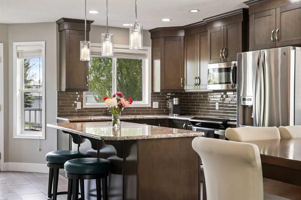 Welcome to the sought-after community of Strathmore Lakes. This immaculately kept bungalow is tucked away on a quiet street and offers just over 2,500 sq ft of developed living space. With 5 bedrooms and 3 bathrooms, it’s the perfect home for families or retirees seeking comfort and space. The open-concept layout features a bright, updated kitchen with modern finishes and direct access to a composite deck—ideal for summer BBQs and outdoor entertaining. The main floor also includes a spacious living and dining area. The primary suite offers a large walk-in closet and a private 3-piece ensuite, providing a quiet retreat. Two additional bedrooms and a renovated 4-piece bathroom complete the main level. Downstairs, you’ll find a generous family room, two more bedrooms, another 4-piece bathroom, and plenty of storage throughout. The south-facing backyard is beautiful and fully landscaped, featuring low-maintenance composite decking, a powered shed, and direct access to a back lane—offering both privacy and convenience. Central A/C keeps the home cool during warm summer days. The double garage has been freshly painted and includes built-in storage. Meticulously maintained and clearly cared for, this home shows true pride of ownership. Located close to parks and within walking distance to two elementary schools, it offers comfort, convenience, and lasting value. This home has everything you need to enjoy the best of small-town living with all the amenities. Take the next step toward making this beautiful home yours—schedule a viewing today!