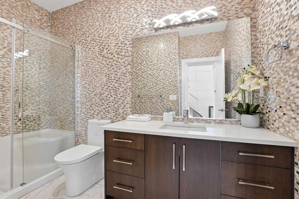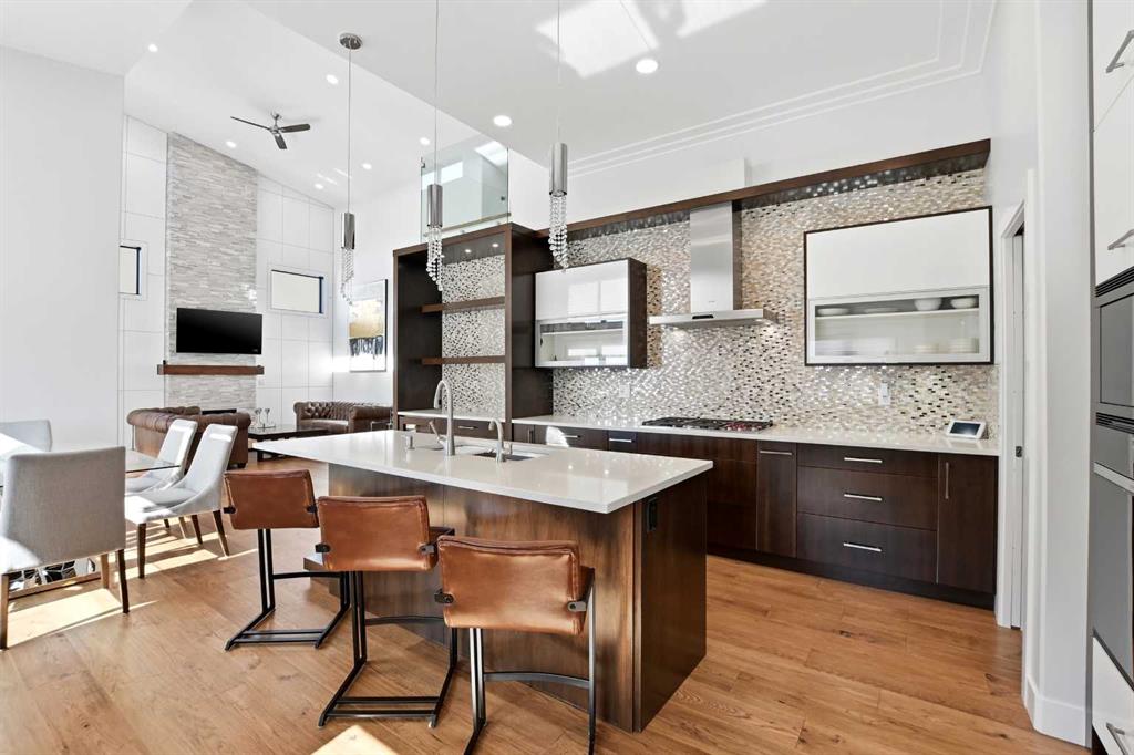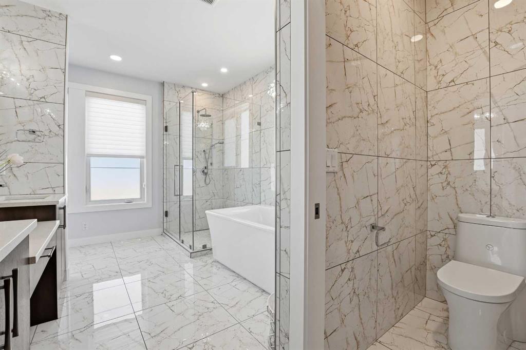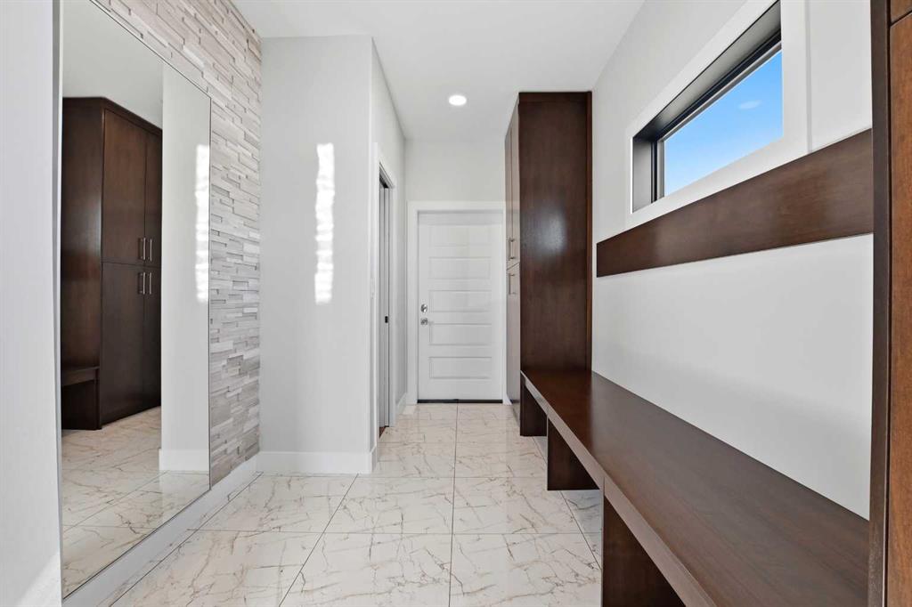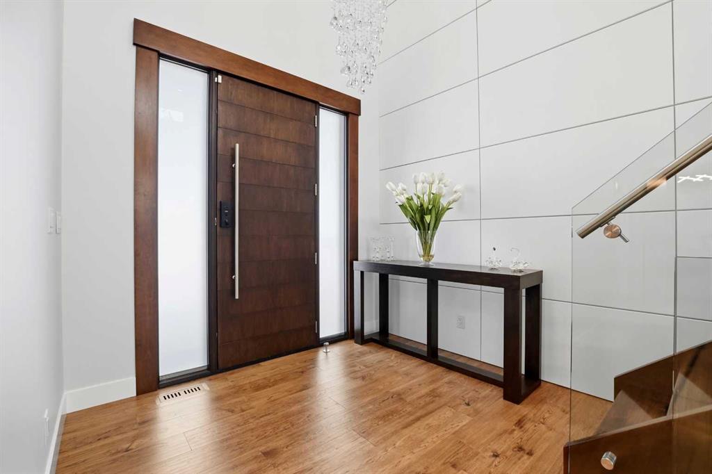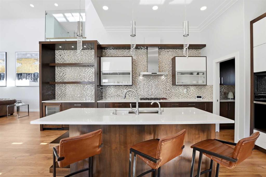 Beautiful MODERN home featuring EXTENSIVE UPGRADES AND HIGH END FINISHINGS. It boasts high ceilings and elegant tile work throughout. The sophisticated lighting design not only highlights the homes architectural beauty but also creates a warm, inviting ambiance. Each detail has been meticulously chosen to deliver the ultimate in comfort and style. Incredible curb appeal, grand entrance, stucco exterior and beautifully landscaped! Open the front door to your forever home and enjoy the modern luxury this home has to offer. An open floor plan soaring vaulted ceilings and massive triple pane (black interior) windows. Kitchen features, sub zero wine fridge, thermador dishwasher, wolf gas cook top, and oven! Expansive QUARTZ COUNTERTOPS, WALNUT CABINETRY, eat up island, reverse osmosis and soap dispenser are just a few more great features. The main floor boasts MAHAGONY HARDWOOD FLOORING, and the extended great room/sunroom features in floor heat. The living room features floor to ceiling NATURAL STONE fireplace wall with a wood mantle. There is a main floor laundry featuring a sink, cabinets and more beautiful white QUARTZ COUNTERTOPS. The main floor bedroom is currently used as an office and adjacent to the stunning 3-piece bath. The STAIRS are solid wood with OPEN RISERS and quality glass railing that lead to your PRIMARY bedroom. An oasis of its own, featuring walk-in closet with custom walnut built in cabinetry, and a 5 piece FULLY TILED ENSUITE. The ensuite has operational IN FLOOR HEAT, quartz counter tops, with dual sinks, and makeup desk, modern lighting, two shower heads, soaker tub and a water closet! The fully developed basement features OPERATIONAL IN FLOOR HEAT, 3 spacious bedrooms, one with its own walk-in closet, a large family room (34'10"x 31'3") with built in TV wall unit, and a functional wet bar with elegant herring bone back splash. There are two stunning spa like bathrooms, fully tiled with modern lighting. More great features this home offers: gas line to deck, composite front deck, glass railing, and duradeck on back deck, front FIR PILLAR, triple pane windows, mud room is tiled, walnut cabinets, wet bar/butlers pantry, custom panels, heated garage floor with floor drain, garage man door, modern overhead silent close door. Situated in the desirable and esteemed community of Timberstone, with an amazing array of shopping amenities nearby.