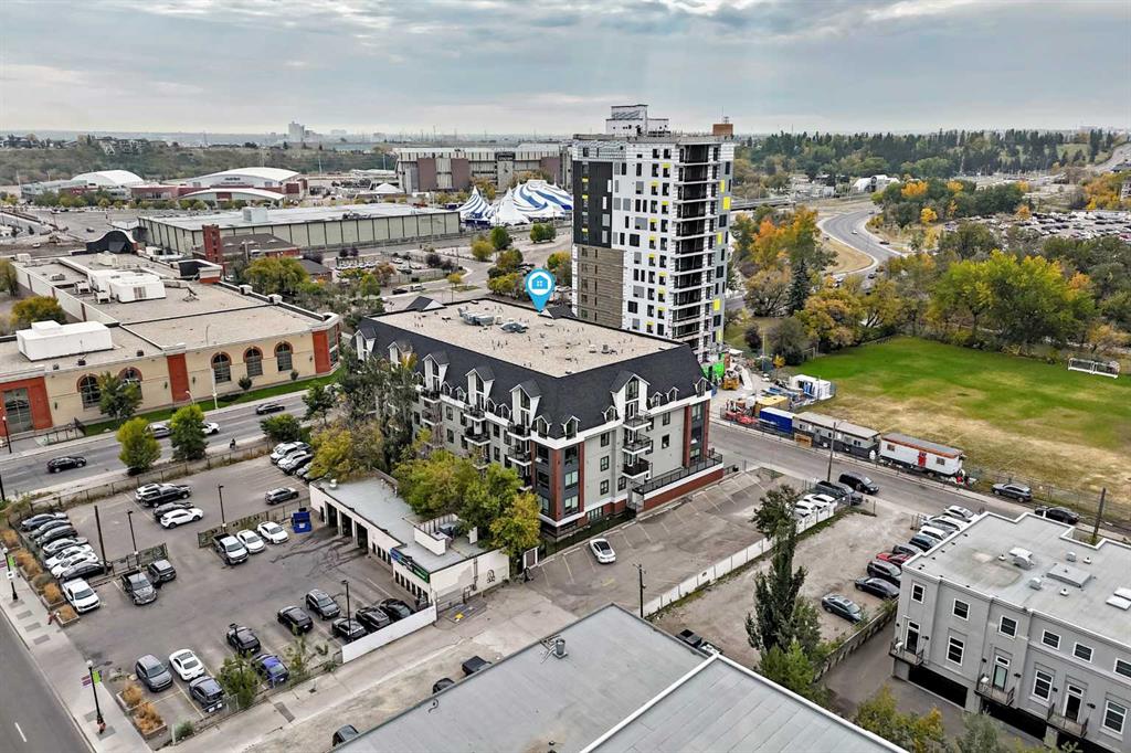Prime opportunity in the heart of downtown! This versatile business condo features two spacious rooms and is perfect for entrepreneurs, professionals or investors. Currently configured for commercial use with office, meeting room and storage space, the unit offers the flexibility to convert into a comfortable residential space, making it ideal for live-work arrangements. Key Features: Located in the vibrant downtown core, close to shops, restaurants, transit, and Stampede grounds. Well partitioned rooms suitable for reception, office, board room, studio, or consultation spaces. Kitchen area with sink, counter space and storage. Secure building with heated underground parkade. 1 titled underground parking stall (#50) is included. Ideal for business owners looking to live and work in the same location.