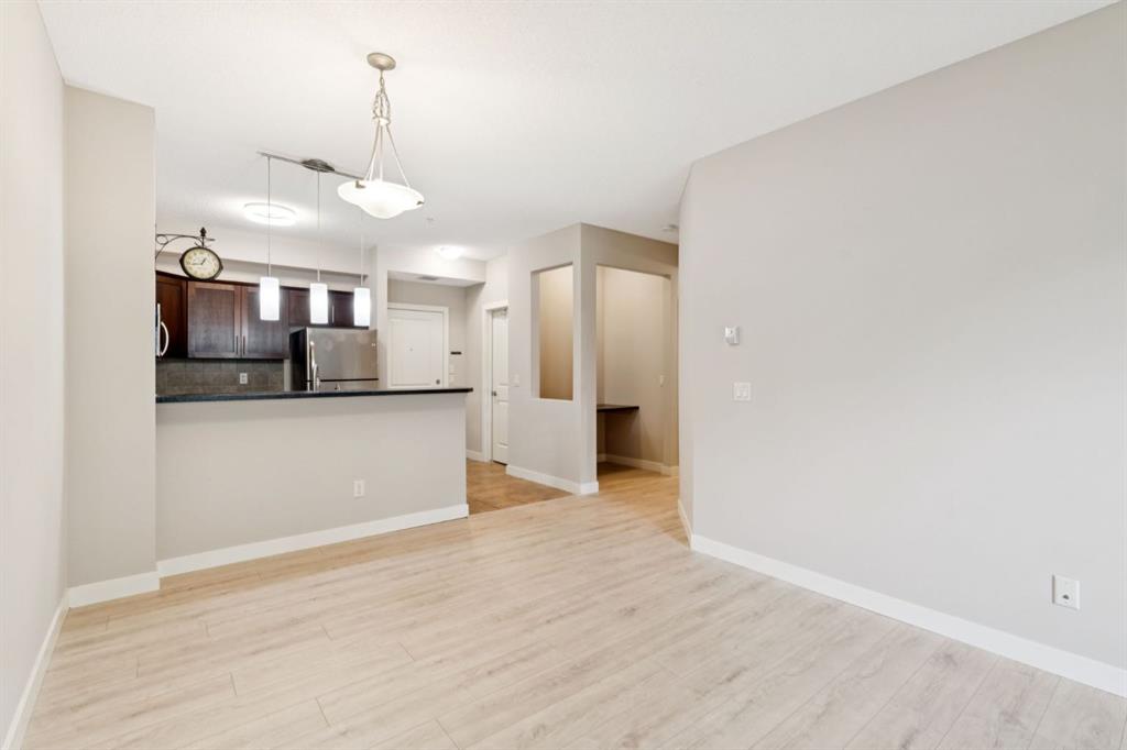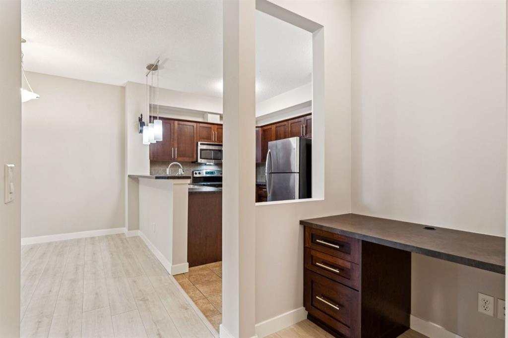 Welcome to this thoughtfully updated two-bedroom home in the sought-after Alora at Sunset Ridge—where comfort, convenience, and walkability come together. Perfectly suited for first-time buyers, downsizers, or investors, this move-in-ready residence offers an exceptional opportunity in one of Cochrane’s most desirable communities. The interior has been freshly painted and features newer flooring throughout, creating a clean and modern feel. The bright, open-concept layout is both functional and welcoming, complete with a built-in office nook ideal for working from home or studying. The kitchen flows effortlessly into the living area, making everyday living and entertaining easy. Step outside to the covered patio with a gas BBQ hookup—perfect for enjoying the outdoors in every season. Practicality hasn’t been overlooked, with generous in-suite storage, a secure storage locker in the titled underground heated parkade, plus the added convenience of an additional titled outdoor parking stall. Residents also enjoy access to excellent amenities including a fitness centre located in building 1, guest suite, and ample visitor parking. The location truly stands out. Walk to nearby schools, the Sunset Ridge business plaza, parks, pathways, and the scenic Cochrane Ranch area. With shops, dining, green spaces, and commuter routes all close at hand, this home delivers an unbeatable lifestyle balance. Tastefully maintained and ideally located, this Sunset Ridge home is ready for its next owner. Book your showing today and experience the convenience for yourself!