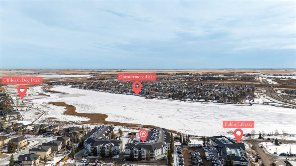 Such an incredible value in a once in a lifetime location. 180 view of Chestemere Lake. Unimaginable square footage in this 2 bedroom 2 bathroom condo. If you ever wanted to live in one of the most affordable and impressive locations and condos you will ever find. Large open living room, comfortable and roomy kitchen, spacious bedrooms, tons of natural light, and underground parking. Super walkable to grocery stores, banking, fast food, and so much more. I honestly could not think of anything more you could ask for. This is a very rare opportunity in this price range so don't wait too long to come see it.