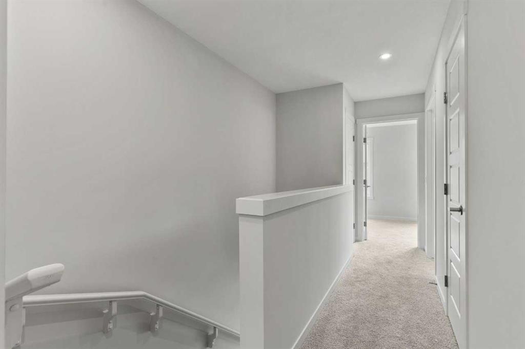 Ambrosia at ZEN Livingston – Offering 1,086 sq ft of thoughtfully designed living space, this 2 BED, 2.5 bath home features TRIPLE-PANE windows, advanced insulation, and a rough-in for solar panels. The OPEN CONCEPT main floor showcases Cicero Luxury VINYL PLANK flooring, pot lights with knock-down ceilings, and a BRIGHT LIVING AND DINING area that flows into your BACKYARD that is FULLY FENCED, perfect for those with kids, pets or wanting to enjoy some privacy - complete with BBQ GAS LINE, landscaping, and irrigation. The modern kitchen features white QUARTZ COUNTERTOPS and a 6-piece Whirlpool appliance package. Upstairs, you'll find two spacious bedrooms including a primary bedroom with an ensuite bathroom, and upstairs laundry. Enjoy HARDIE BOARD siding (hail/fire-resistant), and be part of a vibrant community just steps from the Livingston Hub with splash park, rink, courts & more!. Photos are representative.