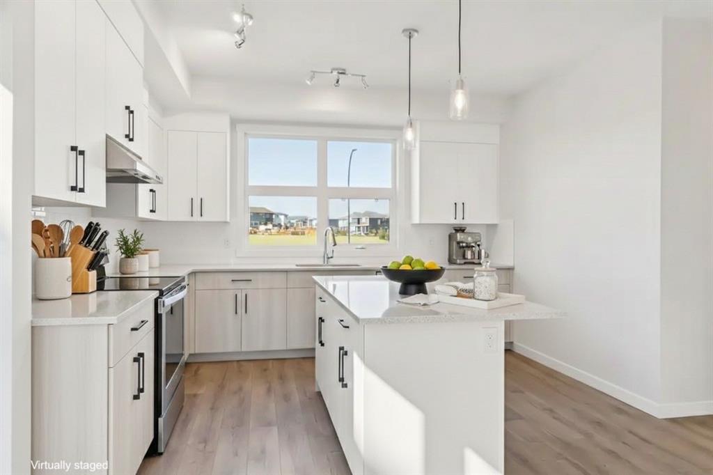 Welcome to Sonoma at Belmont! This brand-new end-unit townhome blends California-inspired design with modern comfort, offering 1,540 sq. ft. (RMS) of bright, stylish living space. The main floor is designed for both everyday living and entertaining, with a sunlit living room framed by oversized windows. The dining area flows into a sleek chef’s kitchen featuring quartz countertops, two-tone European-style cabinetry, stainless steel energy-efficient appliances, wide-plank LVP flooring, and designer lighting. A gas line is ready for future gas cooking, and the balcony is equipped with a BBQ gas hookup—perfect for summer evenings. Upstairs you’ll find three bedrooms, two full bathrooms, and a convenient laundry closet. The primary suite is a true retreat with a large walk-in closet, window for natural light, and an ensuite boasting a deep soaker tub. Added conveniences include balcony storage, and extra garage space for seasonal gear. Built by Morrison Homes, a 16-time Builder of the Year, this home is set within Belmont—a community created for connection. Enjoy pathways, parks, playgrounds, and nearby shopping, plus quick access to Stoney Trail and Macleod Trail for an easy commute. On weekends, take in the action at Spruce Meadows or catch a Cavalry FC game at ATCO Stadium. Pet-friendly and rental-friendly, this townhome is ideal for both homeowners and investors. Discover your next chapter at Sonoma—where style, comfort, and convenience come together.