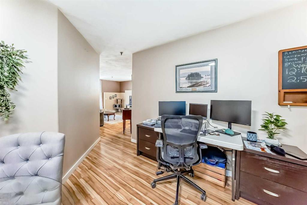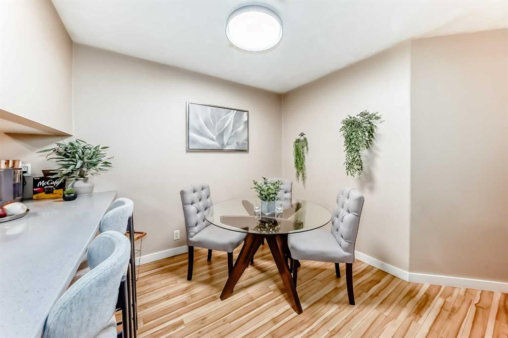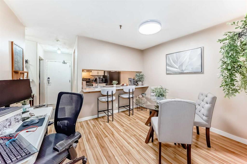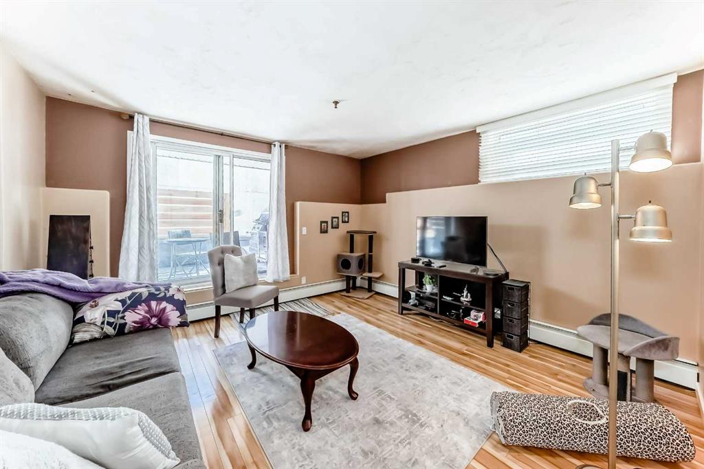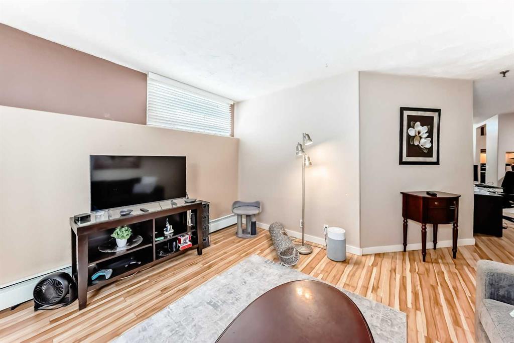Ideally situated just minutes from Chinook Centre, the Calgary C-Train, and downtown Calgary, this home offers unbeatable convenience. Enjoy easy access to Glenmore Trail, Deerfoot Trail, and Crowchild Trail, with a wide variety of amenities, shopping, and dining along Macleod Trail just moments away. This well-maintained unit features several thoughtful updates. The kitchen offers newer cabinetry, a black fridge and stove, and a newer stainless steel dishwasher. A convenient peekaboo island with an eating bar opens to the spacious living room, creating a more open concept. Flooring has been updated with ceramic tile in the kitchen and bathroom, along with newer laminate throughout the main living areas. The bright living room is finished in tasteful neutral tones and opens through sliding patio doors to a generously sized, south-facing private patio—perfect for relaxing or entertaining, with ample space for BBQs and outdoor furniture. The bedroom is well-proportioned and includes plenty of closet space. A partially renovated four-piece bathroom features a newer vanity and toilet. Additionally the building offers a clean well-maintained common laundry on the main level as well as access to the clubhouse with a cozy fireplace and space for gatherings. There is also an extra storage unit (E6) located on the main level and an assigned underground parking for added convenience. Whether you’re a first-time buyer or investor, this is an excellent opportunity. A current tenant is in place and would be happy to stay; however, notice has been given, and the unit can be vacant as of August 1, 2026.