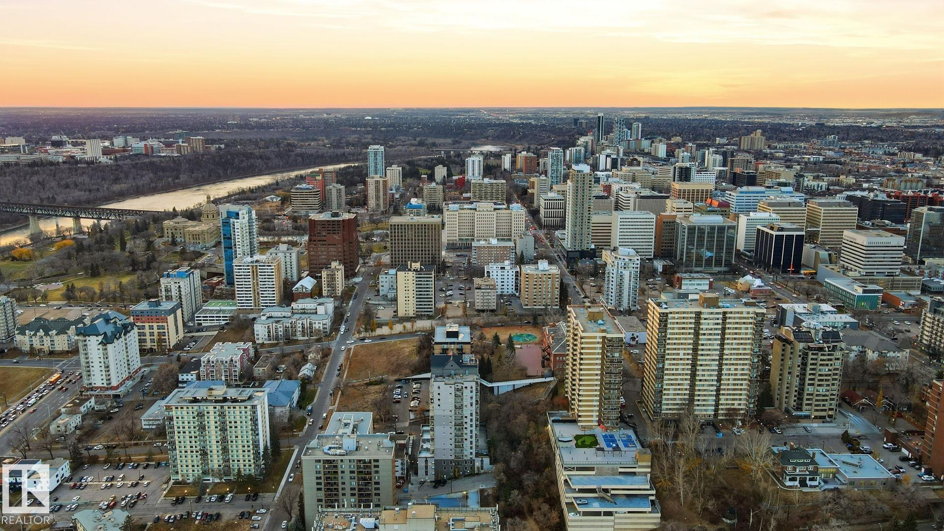 Enjoy downtown views from this move in ready condo in Vivacity, perfectly located near downtown, public transit, the river valley trails, shopping, restaurants, and the U of A. This modern open-concept suite features 9 ft ceilings, granite countertops, white cabinetry, stainless steel appliances, a kitchen island, and maple engineered hardwood flooring. The bright living area offers north and east exposures plus a gas BBQ hookup on the balcony. Recent upgrades include new carpet in the bedroom and a new furnace for added comfort. Included are the fridge, ceramic top stove, built-in microwave, dishwasher, in-suite washer & dryer, window coverings, and A/C. Comes with titled underground parking stall #96 on P1. Condo fees include heat, water, power, and access to building amenities: a rooftop patio with panoramic views, fitness room, and event room. A must-see condo offering modern living and unbeatable downtown convenience!