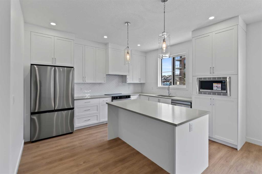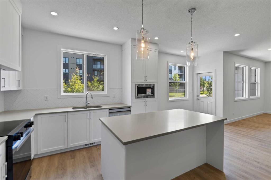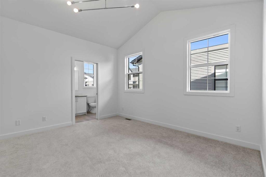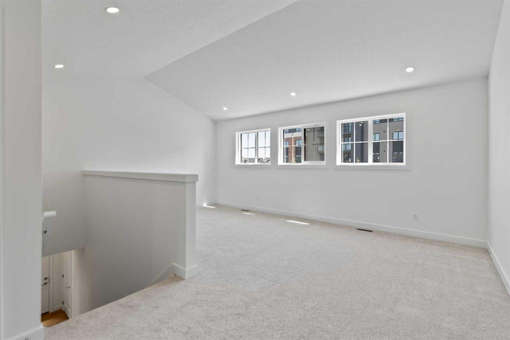 Welcome to luxury and convenience in the heart of Airdrie’s award-winning community of Cooper’s Crossing. This beautifully crafted corner-unit duplex townhome is one-of-a-kind—featuring the highly sought-after primary bedroom on the main floor, perfectly blending everyday comfort with smart design. Step inside to discover a bright, functional main level that boasts: A stylish gourmet kitchen with an oversized island and stainless steel appliances. A cozy family room designed for gathering and relaxation.nYour private main-floor retreat with vaulted ceilings and a spa-inspired ensuite Upstairs, a sun-soaked bonus room offers the perfect space to unwind, work from home, or enjoy family time. Just off the bonus area, you’ll find two additional bedrooms, a full bathroom, and a convenient upstairs laundry space (note: no in-unit washer and dryer). Enjoy the added luxury of 9-foot ceilings on both the main floor and the basement, creating a spacious and airy atmosphere throughout. The basement also includes two bathroom rough-ins, offering the opportunity to design a future layout with two additional bedrooms. Summer evenings are best spent on your covered west-facing balcony—with a gas line for your BBQ and peaceful views of landscaped green space. Additional highlights include: Front Double attached garage Modern, contemporary exteriors with fully landscaped yards Enjoy a true Lock & Leave lifestyle—with condo fees of just $347/month that cover exterior home insurance, snow removal, lawn care, landscaping, irrigation, reserve fund contributions, and even city garbage and waste removal And here’s what makes this home truly special: This is the only duplex unit available among the triplex townhomes in the community—an exclusive opportunity you won’t find again. No stress. No fuss. Just effortless, carefree living in one of Airdrie’s most desirable neighborhoods. Book your exclusive tour today.