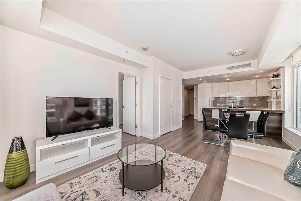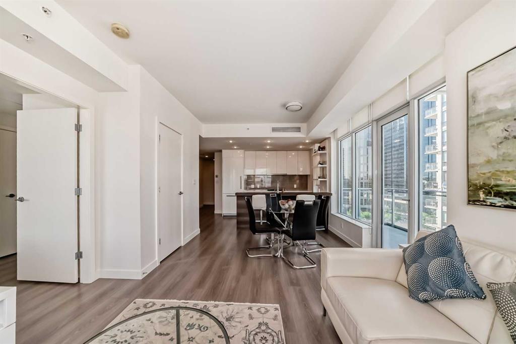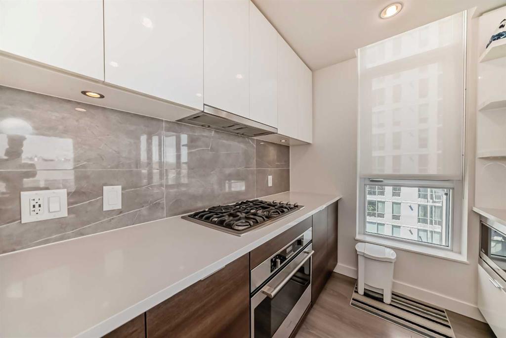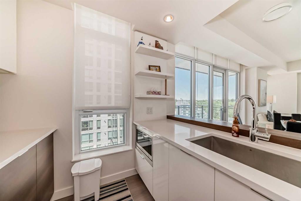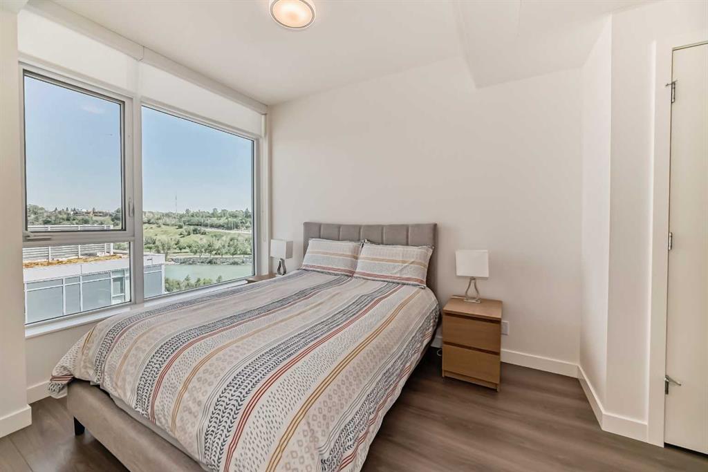 Welcome to Waterfront Parkside - your concrete oasis right beside the Bow River. This stunning 2-bedroom, 2-bathroom corner unit offers 865 sqft of thoughtfully designed living space with northwest exposure. The floor-to-ceiling windows flood the space with natural light without being blinded by direct sun rays. Enjoy sweeping city and park views from this elevated home that perfectly balances urban sophistication & natural serenity. The spacious open-concept layout is ideal for both relaxing and entertaining, while the modern kitchen boasts sleek cabinetry, aesthetic built-in appliances, and a gas cooktop that will delight any home chef. What a wonderful home for young professionals that enjoy a fast-paced downtown life as well as peaceful walks by the river! This may also be a turnkey investment opportunity for any novice investor. The development is conveniently located close to main arteries in & out of downtown, such as Memorial Drive (5th Ave), 4th Ave, Centre Street, and many options to reroute. Waterfront Parkside provides unmatched comfort & convenience with a well-equipped fitness room, hot tub, versatile residents' lounge, and 24-hour concierge/security personnel. The original owners have been blessed with back-to-back rockstar tenants over the years. They have not had any vacancies since the building was completed. The unit has been beautifully maintained and refreshed with a top to bottom professional clean. Don't take my word for it - come check out this urban oasis yourself!
