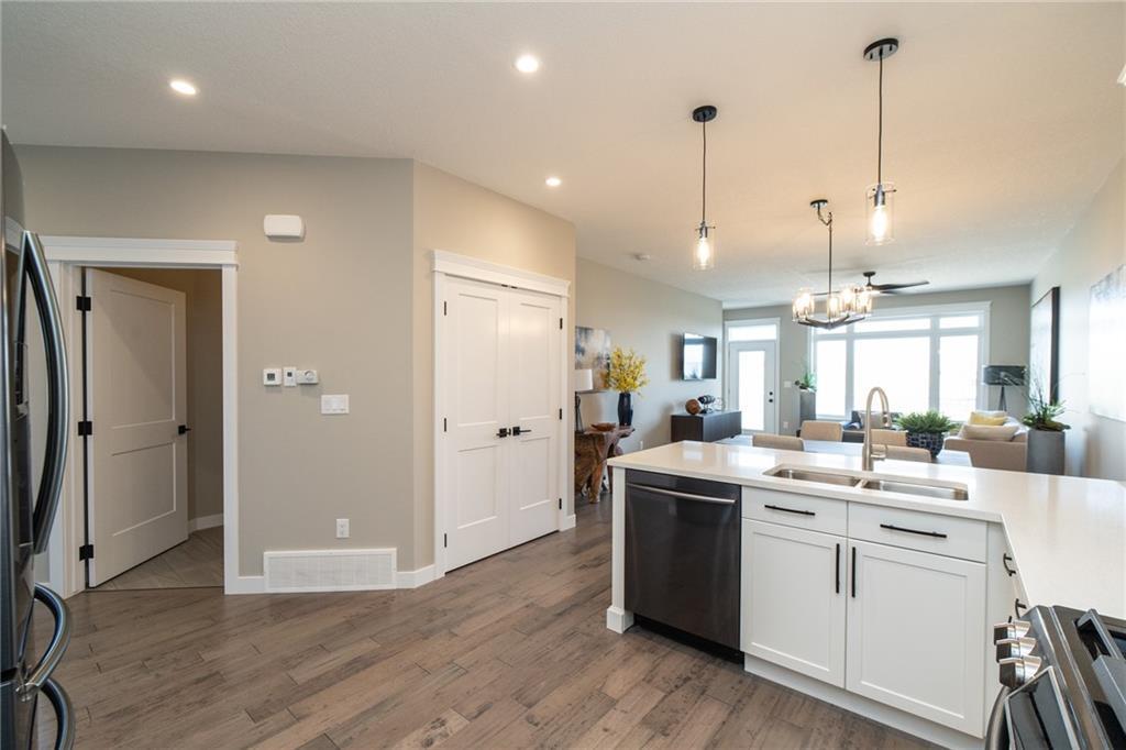 Downsizing doesn’t mean giving anything up — it means finally living the way you’ve earned. Welcome to Cornerstone Village in Olds, where comfort, elegance, and smart design come together in a bungalow that truly feels like an upgrade. Offering just over 1,300+/- sq ft of beautifully planned open-concept living, this home was designed for ease today and flexibility for tomorrow. The first thing you’ll notice is the light. A wall of windows fills the main living space with natural sunshine, creating a warm, welcoming atmosphere that feels both refined and relaxed. The U-shaped kitchen is the heart of the home, finished with quartz countertops, soft-close cabinetry, pot lighting, and a stainless appliance package (appliance credit included). There’s generous prep space, smart storage, and room to host family dinners or enjoy quiet evenings in. Durable, low-maintenance flooring flows seamlessly throughout — stylish yet practical. The primary suite is a true retreat. Spacious and thoughtfully designed, it offers a spa-inspired ensuite with dual sinks, quartz counters, an oversized tile and glass walk-in shower with a sitting bench, and a large walk-in closet complete with custom wood shelving. Laundry is conveniently tucked right inside the suite — because comfort should also be simple. Built with long-term living in mind, this barrier-friendly bungalow features 36” doorways and no flooring transitions. The basement is prepped for in-floor heat and ready for your vision, with room for two additional bedrooms, a full bath, and a spacious recreation area — ideal for guests, hobbies, or visiting family. The attached 20x24 garage is insulated, drywalled, and prepped for future heat. With a maintenance-free exterior and a modest $295/month condo fee, you’re free to enjoy walking trails, nearby shopping, coffee with friends, and everything Cornerstone Village has to offer — including a welcoming common gazebo gathering space. This isn’t a compromise. It’s a confident next step. Refined, practical, and ready for the lifestyle you’ve worked for.