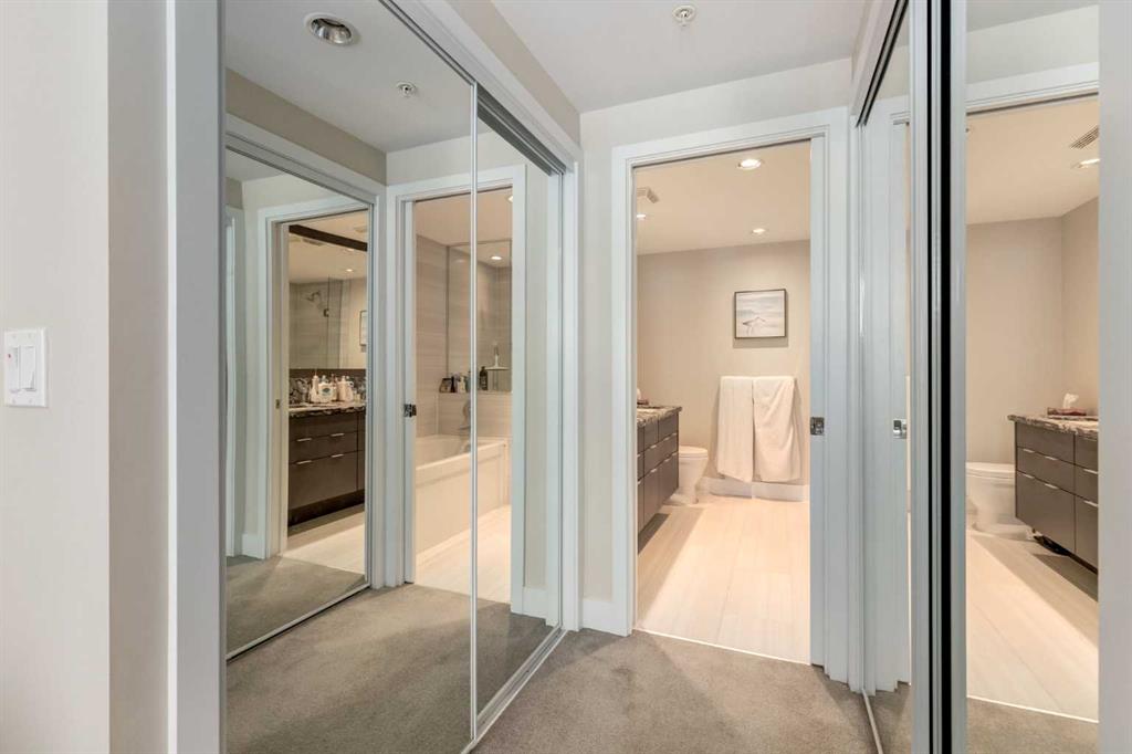 Luxury Meets Smart Investment in Calgary’s East Village – Perfect for Investors & First-Time Buyers. Welcome to the heart of East Village, one of Calgary’s most dynamic and walkable neighbourhoods. This executive-style 2-bedroom, 2-bathroom suite in the sought-after Evolution complex offers exceptional value for both savvy investors and first-time buyers looking for style, comfort, and long-term potential. Bright, modern, and move-in ready, this unit features a spacious, open-concept layout with floor-to-ceiling windows, stainless steel appliances, granite countertops, gas range, and heated bathroom floors—everything today’s renter or homeowner is looking for. The primary suite includes a walkthrough closet and the ensuite has dual sinks, tub and shower, while the second bedroom—perfect as a home office or guest room—is located near a second full bathroom. Central A/C, in-suite laundry, and underground parking and storage complete the package. Enjoy stunning views of the Bow River. Residents enjoy a premium lifestyle with 24/7 concierge service, fitness facilities, sauna & steam rooms, rooftop patio with BBQs, social lounge, bike storage, and underground visitor parking. With a Walk Score of 94 and Bike Score of 92, you're just steps from the Riverwalk, CTrain, Superstore, New Arena District, Calgary Public Library, Studio Bell, restaurants, cafes, and more. Whether you're entering the market or expanding your portfolio, this is a rare chance to own a low-maintenance, high-appeal property in one of Calgary’s most desirable downtown communities.
