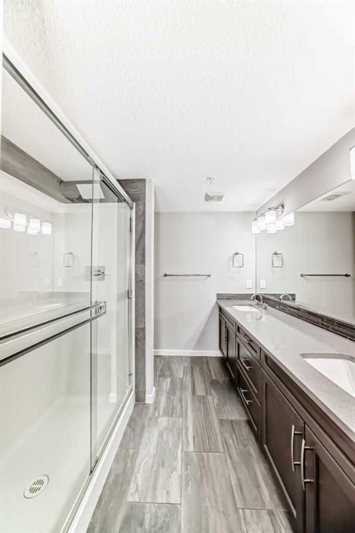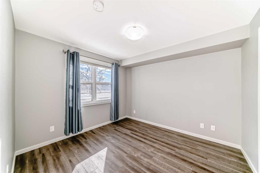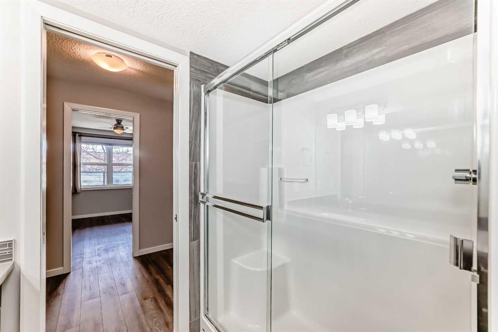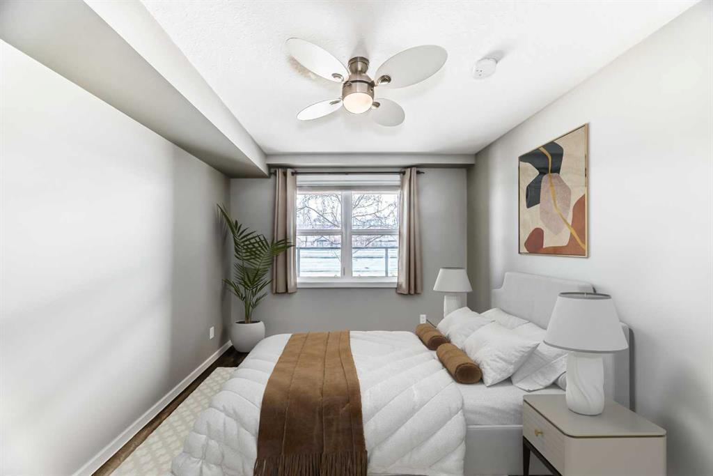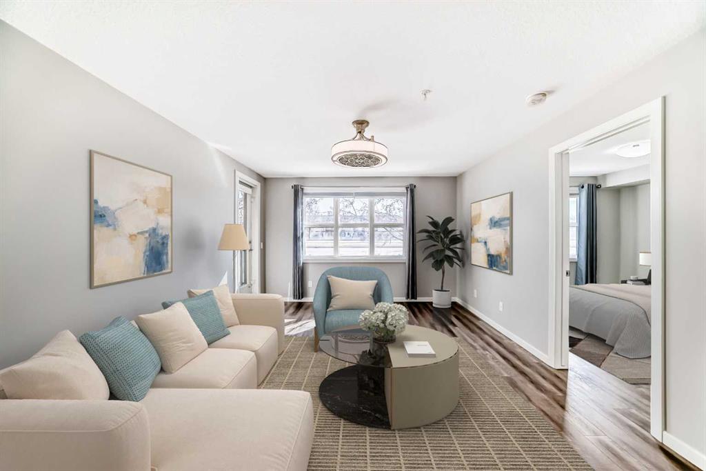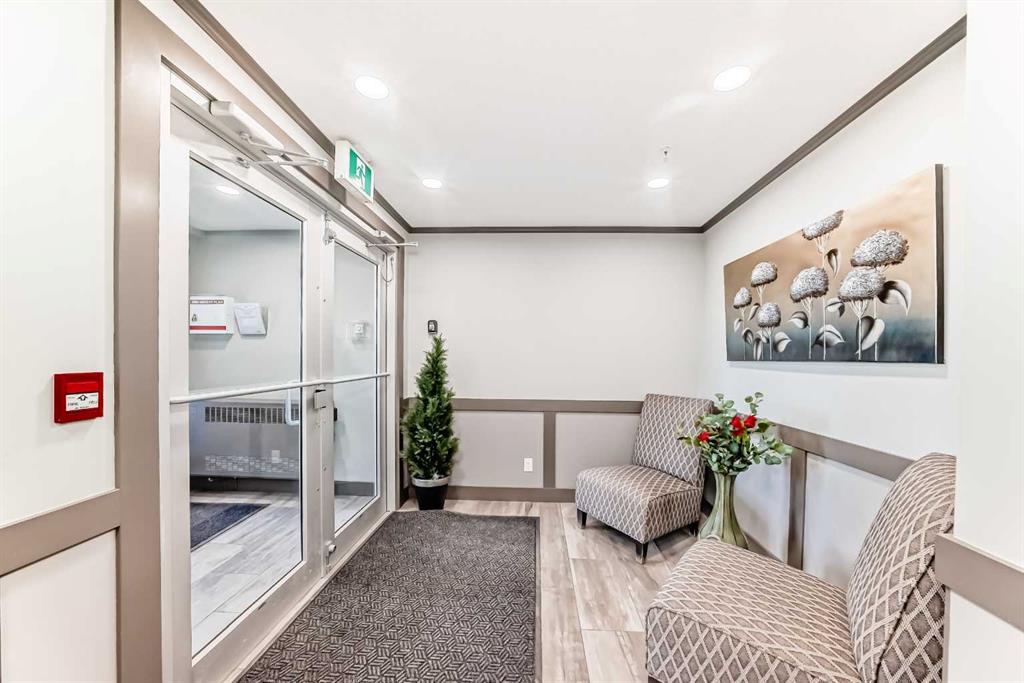 Welcome to The Chateaux at 10 Market Boulevard – Airdrie’s premier 55+ condominium community where luxury and convenience meet. This beautifully appointed ground-floor unit offers 2 spacious bedrooms, each featuring walk-in closets with custom organizers, providing exceptional storage. The primary ensuite showcases dual sinks and a walk-in shower, while the main bathroom features a relaxing soaker tub—perfect for unwinding. The thoughtfully designed kitchen and living areas feature quartz countertops, durable vinyl flooring, ample cabinetry, a pantry, and a convenient broom closet. High-end top-down/bottom-up blinds allow natural light to fill the space while maintaining privacy. Step outside to your private ground-floor deck with glass railing and gas BBQ hookup, offering easy access directly into your home. Additional highlights include: • Titled underground parking stall #3, conveniently located near the entrance/exit garage door. • Storage unit on the wall of this parking spot that you can lock up • Large walk-in closets with built-in organizers • Ample visitor parking Residents of The Chateaux enjoy exceptional amenities including a beautifully landscaped courtyard with a gas fireplace, a bookable amenity room for private gatherings, and a secure workshop located in the underground parkade. Ideally situated close to shopping, banking, restaurants, and medical offices, this home offers comfort, convenience, and community living. Simply book your showing and discover the lifestyle waiting for you at The Chateaux.