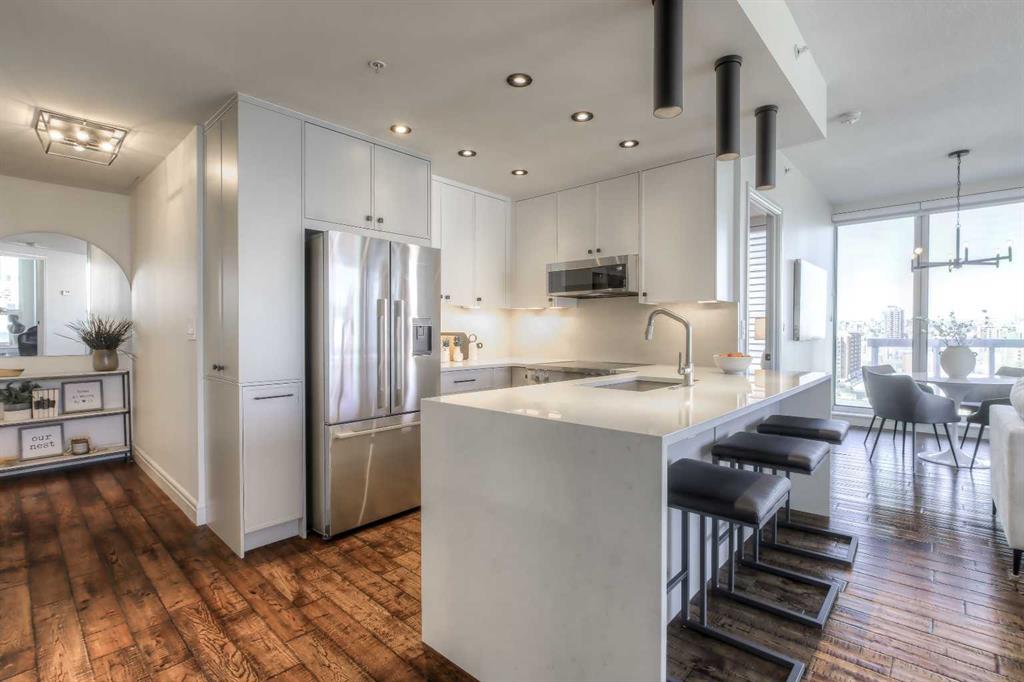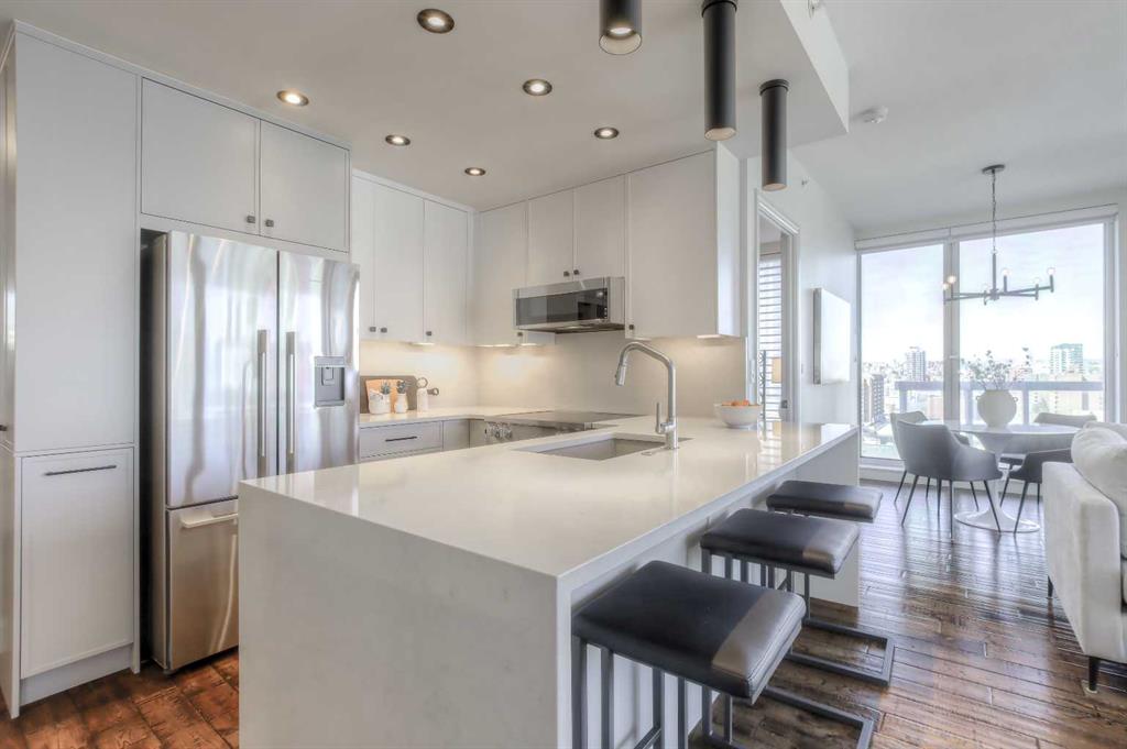 Must see! Beautiful, complete, and high end renovation throughout. The Montana is one of Calgary's very best condominium communities. A finely built and tested building ideally located behind Mt Royal Village, its many amenities and great restaurants. A great floor plan, preferred building location, and STUNNING RENOVATIONS combine to make this a simply Beautiful home. This 2 bedroom and 2 bathroom home features a NW corner location that provides great natural light and distant city views. And, just move-in as all quality furniture is included. In addition, this unit has 2 sxs and titled parking stalls. The Montana has high end common area finishings, full time concierge service, and an excellent gym. Many possibilities. Exceptional living!