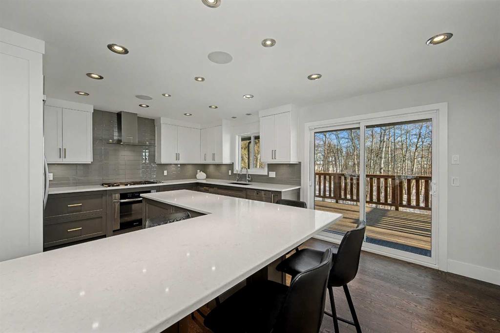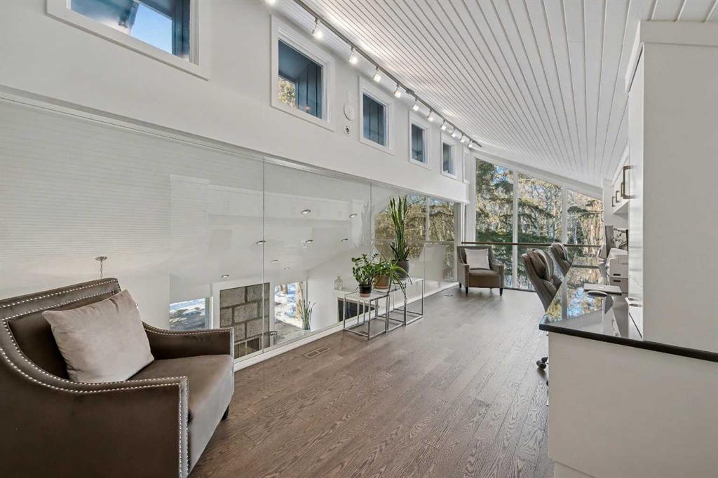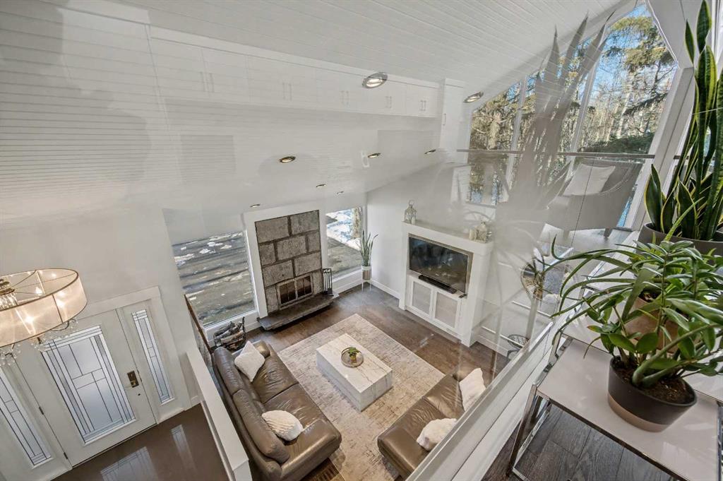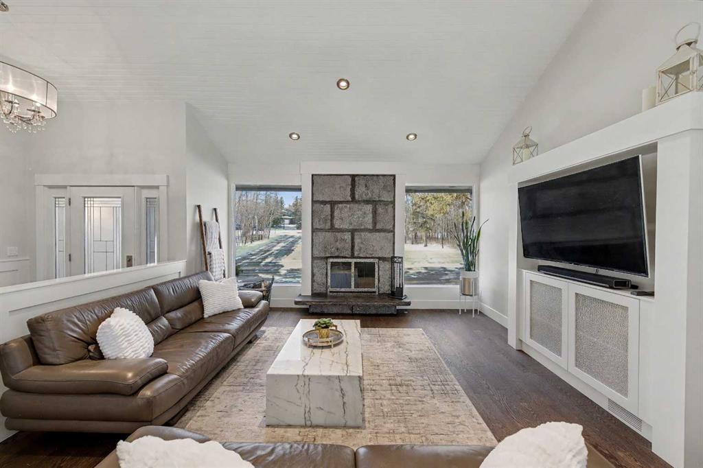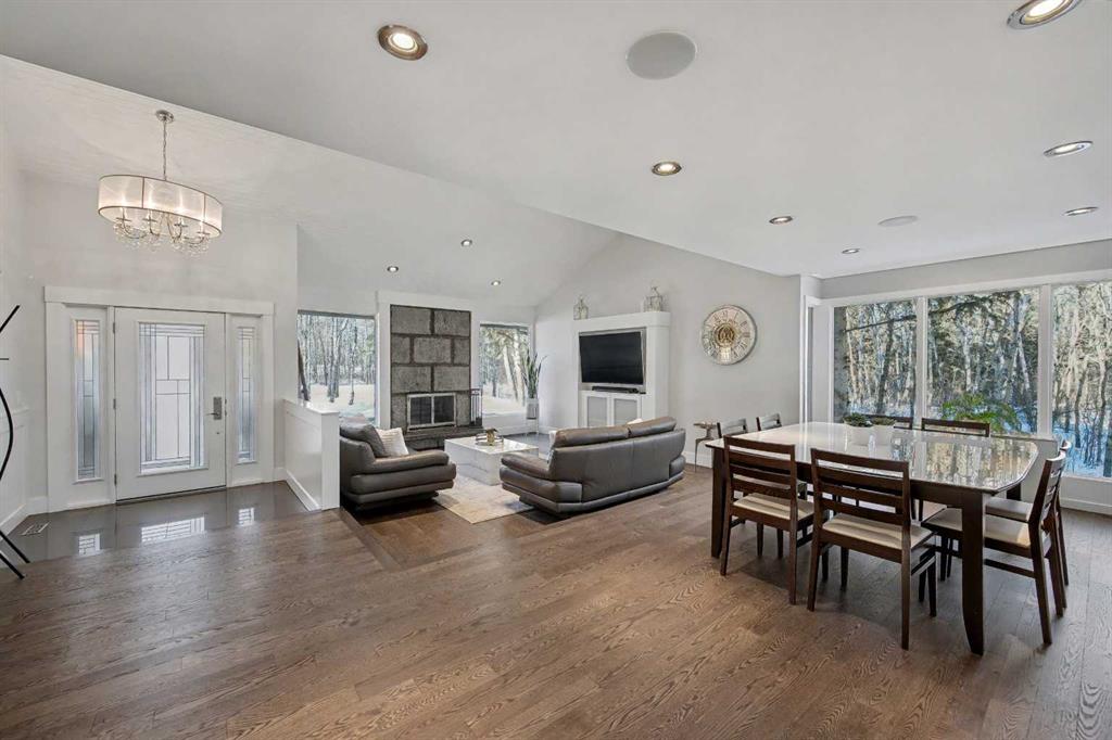 Welcome to an extraordinary estate in Heritage Woods, where luxury living meets the serene beauty of nature just minutes from the vibrant amenities of Calgary. Set on a breathtaking 2-acre lot embraced by towering mature trees, this one of a kind residence offers unmatched privacy in one of the area’s most exclusive communities. Here, you can enjoy the tranquility of rural living without sacrificing the convenience of city life. From the moment you step inside, you’re welcomed by a stunning open concept design enhanced by rich hardwood floors that flow seamlessly throughout the main and upper levels. The elegant great room impresses with soaring vaulted ceilings, custom built-ins, and a charming wood burning fireplace that creates the perfect ambiance for cozy evenings. The heart of the home a chef inspired kitchen features gleaming quartz countertops, a spacious island ideal for gatherings, and a sophisticated dining area designed for memorable entertaining. Just beyond, a sun drenched bonus room with its own built-ins and second wood burning fireplace offers a warm and inviting retreat. A spectacular glass enclosed home office overlooks the main floor, blending architectural beauty with everyday functionality perfect for those who can also work from home and appreciate inspiring spaces. Upstairs, you’ll find three generously sized bedrooms, while the fully developed lower level offers a fourth bedroom ideal for guests or extended family. With a total of 3.5 beautifully appointed bathrooms, main floor laundry, and thoughtfully designed living spaces throughout, comfort meets convenience at every turn. Step outside onto a spacious deck that offers the perfect setting for entertaining guests, dining outdoors, or for simply relaxing and enjoying the beauty of nature. Completing the home is a spacious three car attached garage, offering both practicality and prestige. The property also allows for a secondary suite accessory dwelling unit, creating exceptional versatility for multigenerational living, extended family accommodations, private guest quarters, or an elegantly designed independent living space. This is more than a home it’s a lifestyle defined by elegance, space, and timeless quality. Experience the privacy. Embrace the luxury. Fall in love. A rare opportunity to own a private estate where elegance meets nature, where space meets sophistication, and where every day feels like a retreat.