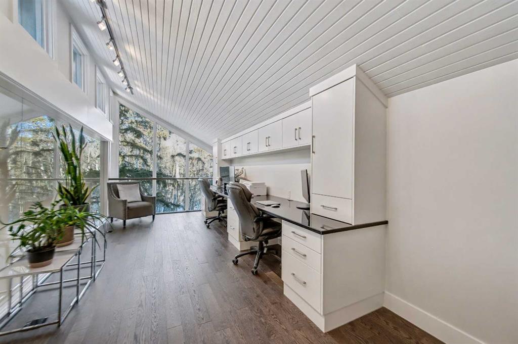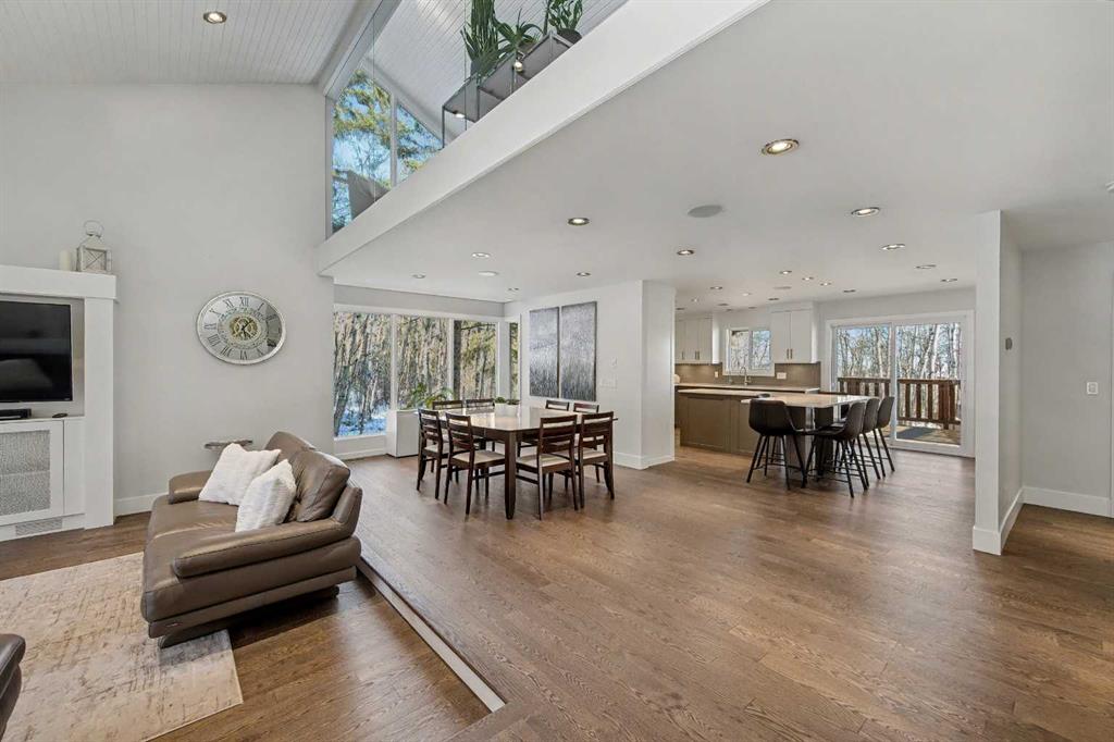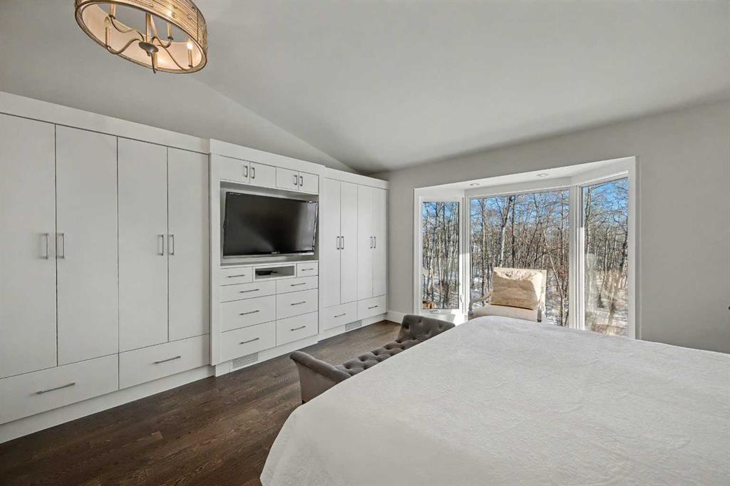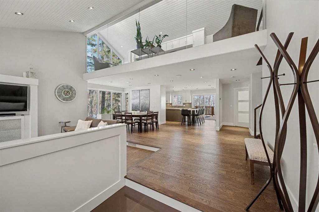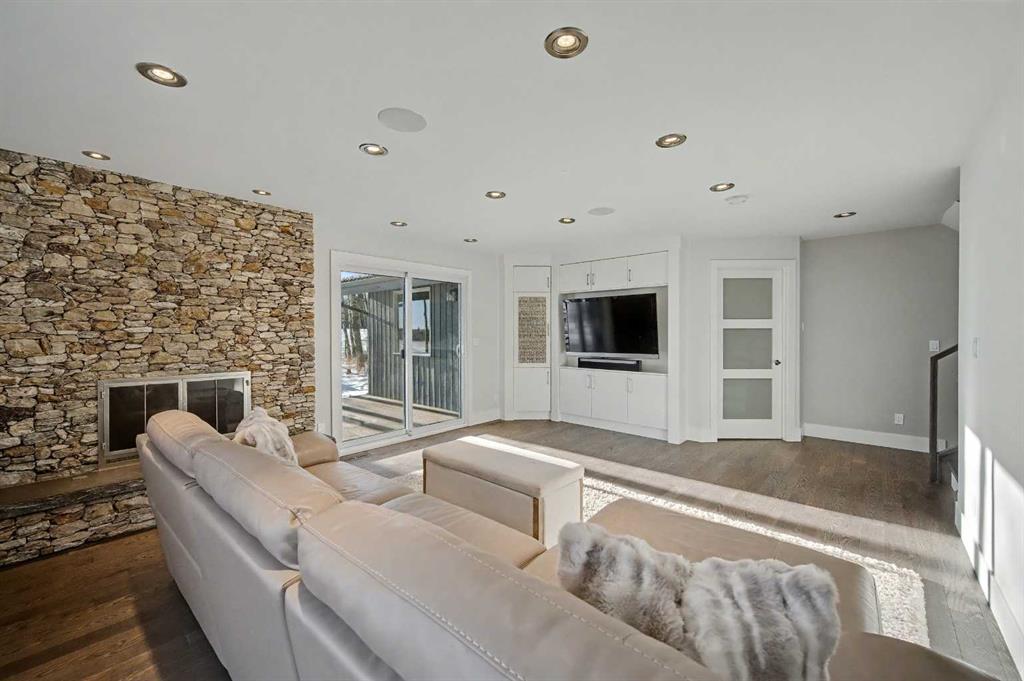 Welcome to an extraordinary estate in Heritage Woods, where luxury living meets the serene beauty of nature just minutes from the vibrant amenities of Calgary. Set on a breathtaking 2-acre lot embraced by towering mature trees, this one of a kind residence offers unmatched privacy in one of the area’s most exclusive communities. Here, you can enjoy the tranquility of rural living without sacrificing the convenience of city life. From the moment you step inside, you’re welcomed by a stunning open concept design enhanced by rich hardwood floors that flow seamlessly throughout the main and upper levels. The elegant great room impresses with soaring vaulted ceilings, custom built-ins, and a charming wood burning fireplace that creates the perfect ambiance for cozy evenings. The heart of the home a chef inspired kitchen features gleaming quartz countertops, a spacious island ideal for gatherings, and a sophisticated dining area designed for memorable entertaining. Just beyond, a sun drenched bonus room with its own built-ins and second wood burning fireplace offers a warm and inviting retreat. A spectacular glass enclosed home office overlooks the main floor, blending architectural beauty with everyday functionality perfect for those who can also work from home and appreciate inspiring spaces. Upstairs, you’ll find three generously sized bedrooms, while the fully developed lower level offers a fourth bedroom ideal for guests or extended family. With a total of 3.5 beautifully appointed bathrooms, main floor laundry, and thoughtfully designed living spaces throughout, comfort meets convenience at every turn. Step outside onto a spacious deck that offers the perfect setting for entertaining guests, dining outdoors, or for simply relaxing and enjoying the beauty of nature. Completing the home is a spacious three car attached garage, offering both practicality and prestige. The property also allows for a secondary suite accessory dwelling unit, creating exceptional versatility for multigenerational living, extended family accommodations, private guest quarters, or an elegantly designed independent living space. This is more than a home it’s a lifestyle defined by elegance, space, and timeless quality. Experience the privacy. Embrace the luxury. Fall in love. A rare opportunity to own a private estate where elegance meets nature, where space meets sophistication, and where every day feels like a retreat.
