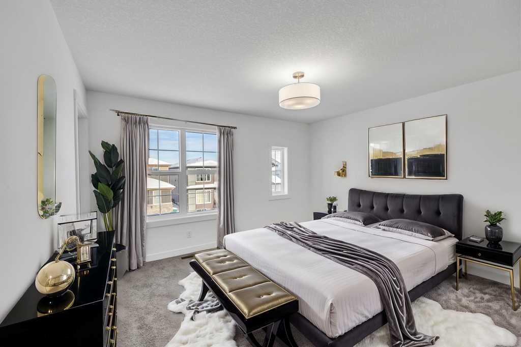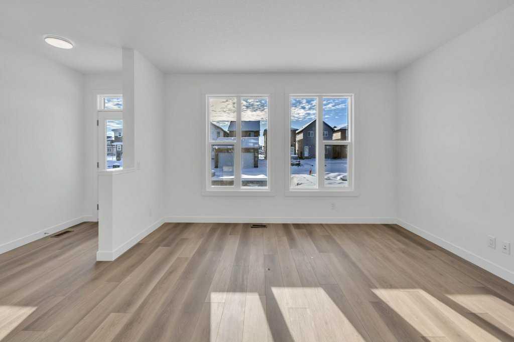 Welcome to this fully upgraded brand new single-family home located in the up-and-coming neighborhood of Chinook Gate in Airdrie. This is a fantastic opportunity to own a Brand new home without the wait! Built in 2024, this never-occupied home includes the Alberta New Home Warranty from the builder. With approximately 2632 sq ft of living space, this property features an ILLEGAL BASEMENT SUITE, a concrete parking pad, 4 bedrooms, 3.5 bathrooms, 2 living areas and a lot more to explore. The main floor boasts two spacious living areas, a generously sized kitchen with a pantry, and a dining area. Step inside to find a bright and inviting first living area with a large window. Sleek stainless steel appliances give the kitchen a stylish edge, while the open layout seamlessly connects to the family room, which is filled with natural light from large windows—perfect for entertaining or cozy family gatherings. Upstairs, you’ll find the primary bedroom, a bonus room, a laundry room, two bathrooms, and two additional well-sized bedrooms. The primary bedroom stands out with its luxurious ensuite bathroom, walk-in closet, and private balcony. The bonus room offers flexible space for an office, playroom, or extra living area, and the laundry room is conveniently located on this level. 2 other good size bedrooms which share a common bathroom completes the upper floor. The ILLEGAL BASEMENT SUITE includes a side entrance, a spacious bedroom, a bathroom, a kitchen, and a large living area with a huge window for natural light. The property also comes with a concrete garage pad ready for future garage development. Photos are taken before the tenants move in. Book your private showing today!