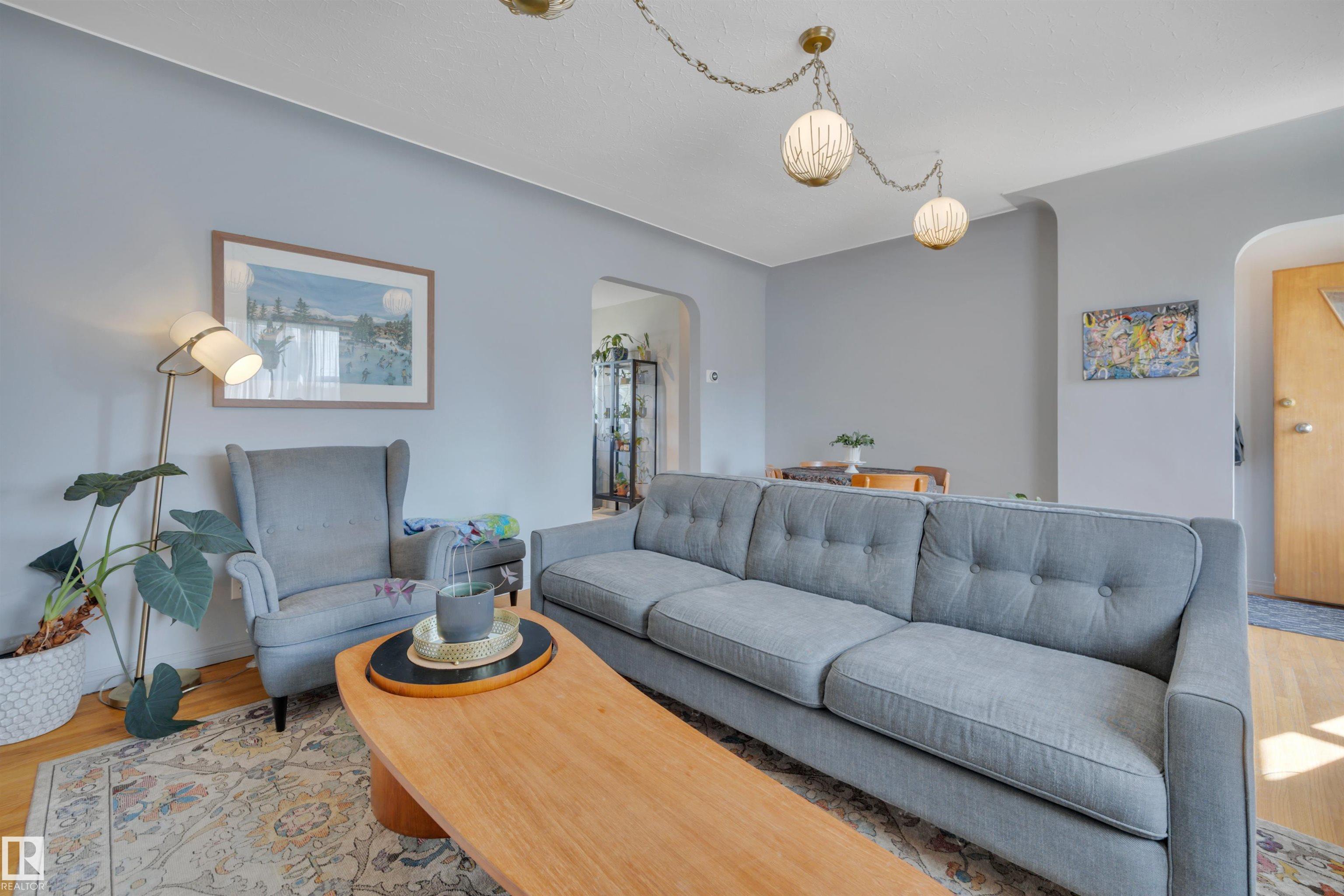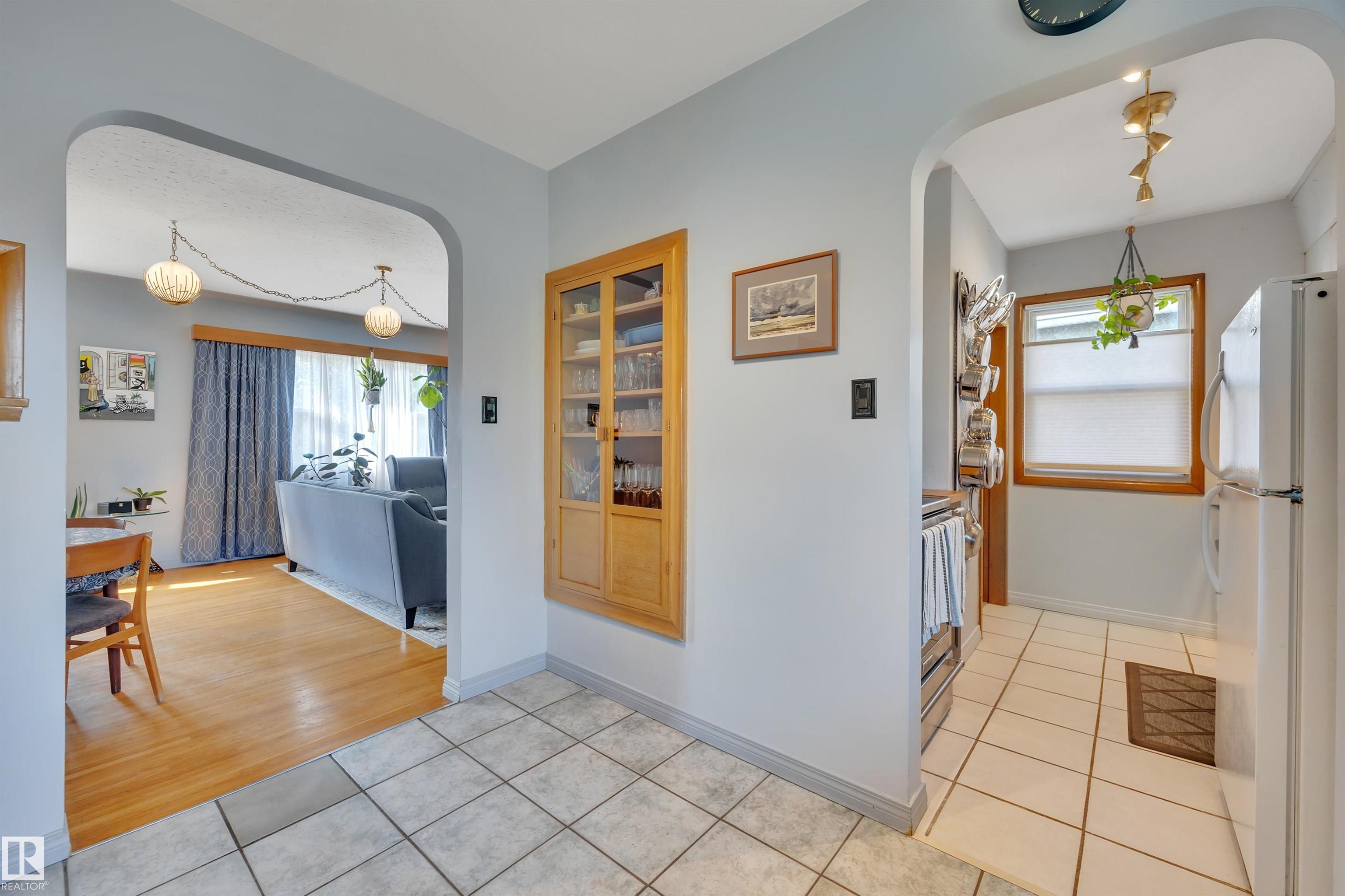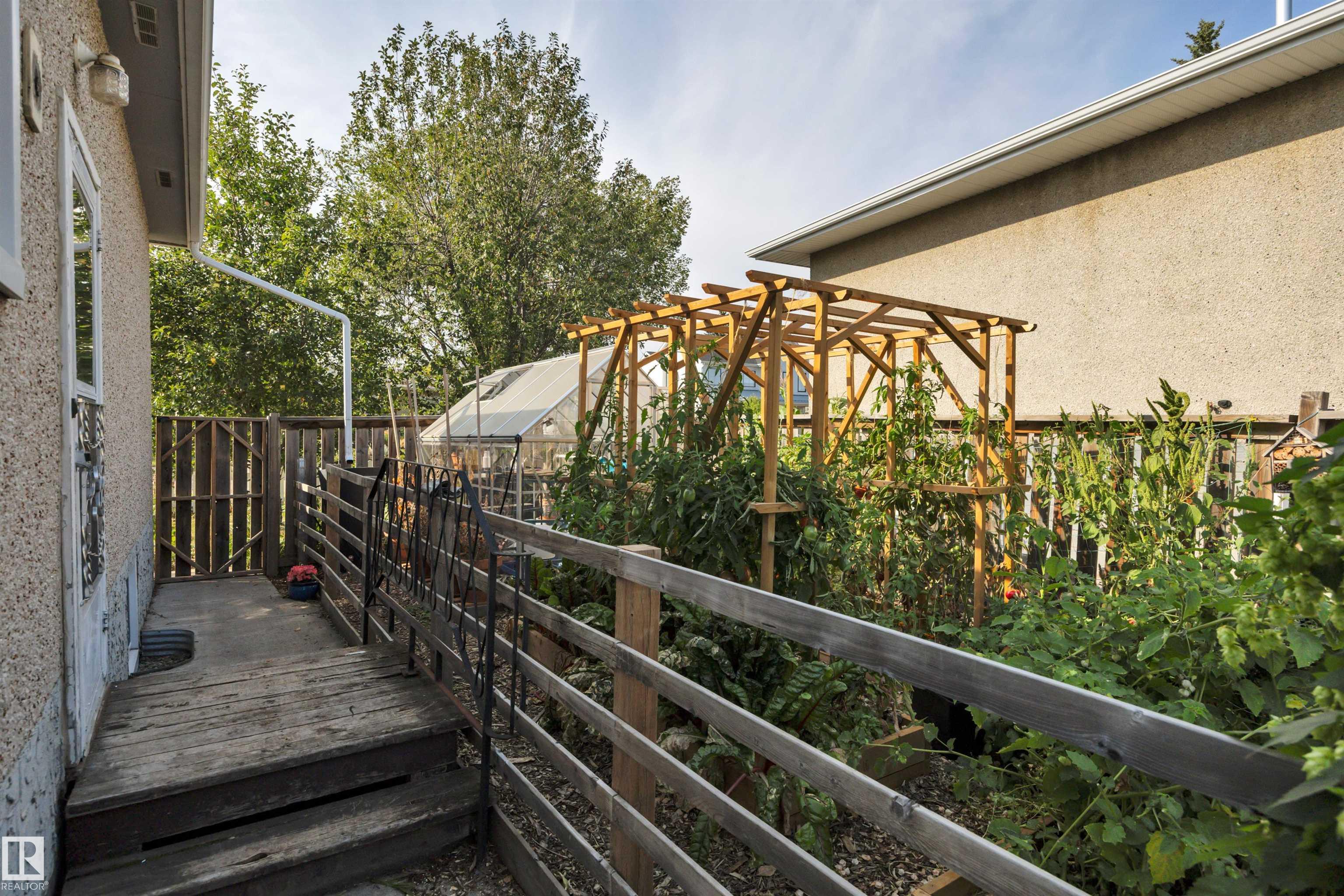 Welcome to Prince Rupert! This well maintained 3 bed / 2 bath bungalow features a newly renovated basement with 2nd kitchen. Ideally located on a quiet street and large lot, the white picked fence will make you feel immediately at home. The vintage front door and original hardwood floors welcome you into the charming living room, with reclaimed vintage fireplace mantle and lighting. Just down the hall is the 4-piece main bath and 2 generous bedrooms. The finished basement with separate entrance offers a 3rd bedroom, rec room, stylish kitchen, and oversized utility room with your laundry and plenty of space for storage. Ideal for entertaining, your large backyard is complete with a concrete patio, greenhouse, vegetable garden, and well manicured lawn. This turnkey home features vinyl windows, a newer furnace (~2021), updated shingles (~2015), new appliances, and a rear pad for extra parking. Easy access to public transit, schools, parks, NAIT, the Royal Alexandra Hospital, and Kingsway Mall. A must see!
