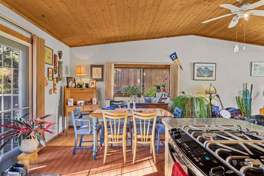 A charming 3-bedroom, 2-bathroom single-family home nestled in the highly sought-after Lions Park neighborhood of Canmore. This 2,195 sq. ft. residence is filled with timeless mountain character and warmth. The inviting interior features wood-paneled cathedral ceilings and an open-concept layout that perfectly blends comfort and functionality. The spacious living and dining areas are ideal for entertaining or relaxing while enjoying breathtaking mountain views. Each bedroom is generously sized, offering comfort and flexibility for family or guests. Outside, you’ll find a fenced yard and private back deck, creating a peaceful retreat to take in the mountain air. A double detached garage and large storage shed provide ample space for vehicles, tools, and mountain gear. The basement offers excellent potential for a legal suite, making it ideal for added income or extended family living. Perfectly situated just steps from parks, schools, downtown Canmore, and an extensive network of hiking and biking trails, this home offers the perfect balance of charm, character, and convenience in one of Canmore’s most desirable neighborhoods.