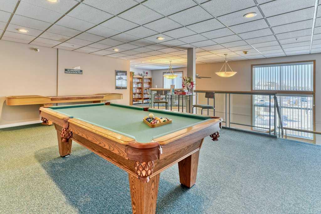 Welcome to this beautifully updated 2-bedroom plus den condo offering style, comfort, and convenience. The open floor plan is perfect for entertaining, featuring a bright living room with a cozy corner gas fireplace and access to the private balcony. The modern white kitchen boasts granite countertops and updated flooring, creating a fresh, contemporary feel throughout. The den with French doors provides the perfect space for a home office or reading nook. The spacious primary bedroom includes a walk-in closet and a 4-piece ensuite. A generous second bedroom, additional bathroom, and large laundry area add practicality and ease. This unit is immaculate and turn Key complete with A/C to add to comfort during the summer months! Enjoy the exceptional amenities this complex offers — including a library, recreation room, lounge, and gazebo — all designed to enhance your lifestyle. Large underground parking stall and a storage unit. Note-Building is 55+ a non smoking and no pet building--