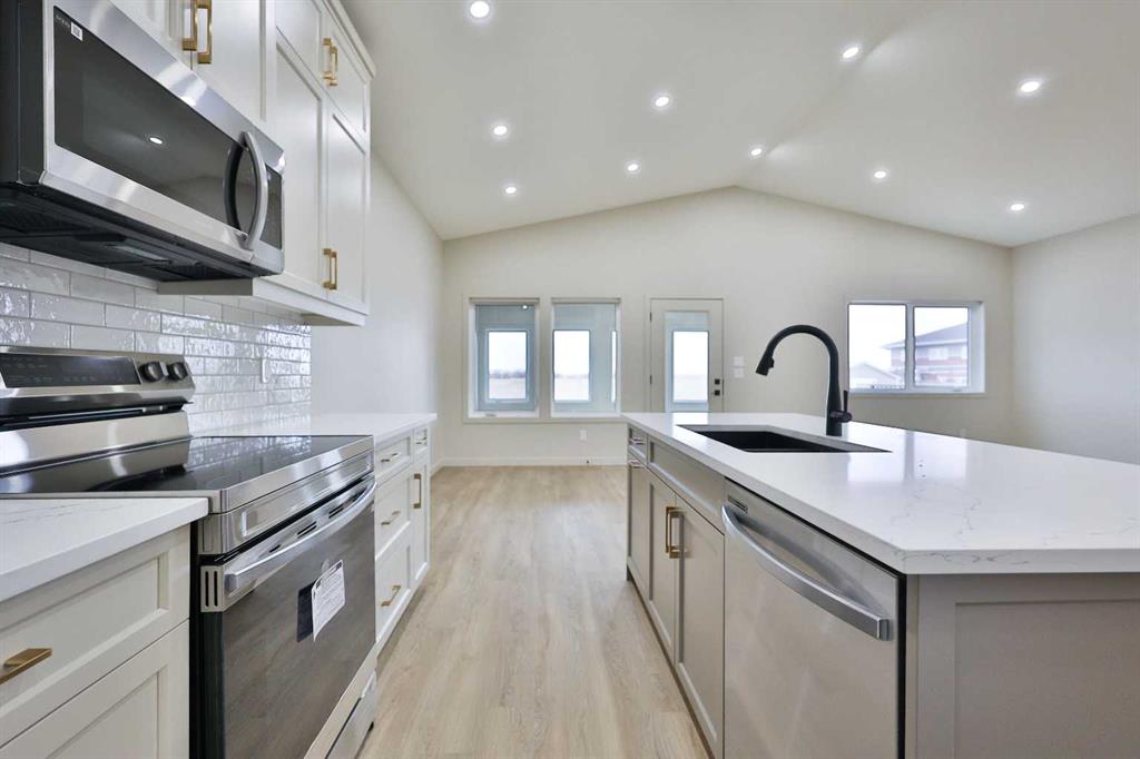 Welcome to this brand new, bungalow style home in the adult community of Aspen Pointe, located in the picturesque town of Raymond, just 20 minutes from Lethbridge! Here you can enjoy the tranquility of a green strip and walking path directly across the street, complete with a frisbee golf course for outdoor entertainment. This home is ideally located near Raymond’s top amenities, including the golf course, The Mercantile grocery store, hospital, restaurants, and more. Inside, you'll find two spacious bedrooms on the upper level, with the option to convert the front bedroom into a large office space for your convenience. The kitchen is truly a luxury, featuring stainless steel appliances, sleek quartz countertops, a gorgeous island, and plenty of cabinetry and a pantry for storage. The open dining and living room area is perfect for entertaining or relaxing and feel grand, due to the vaulted ceiling! Step outside to the enclosed sunroom at the back of the home, where you can bask in the year-round natural light and witness the beauty of each season. The unfinished basement offers potential for customization, with the option for the builder to complete it to your preferences or act as a large storage room/blank slate for whatever you would like! The primary bedroom is a serene retreat with a stunning walk-in shower and double vanity in the ensuite bathroom. Central air conditioning, natural gas heater in the garage, and irrigation water for your outdoor watering ensure year ‘round comfort both inside and out! This home combines modern living with a peaceful community setting—if you are looking to downsize and find a quiet place to live don’t delay! Call your REALTOR® and schedule a showing today!