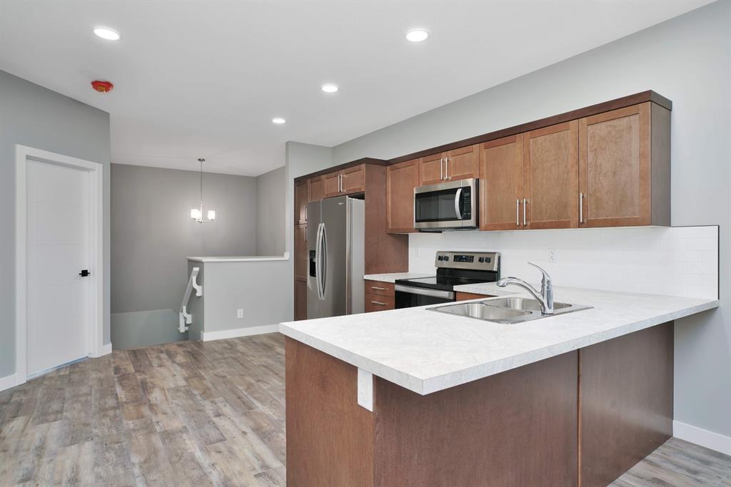 Welcome to Sylvan Lake…your ideal Dream Starter home featuring a two-bedroom illegal suite, a 22x22 finished garage, and an additional parking stall. This beautifully designed Henderson Homes build showcases distinction, quality, and dramatic flair throughout. The main floor offers an impressive L-shaped kitchen with an island eating bar—perfect for casual meals or buffet-style entertaining. A full wall of rich mocha cabinetry, upgraded appliances, and exceptional finishing details create a space that is both stylish and functional. The open-concept layout flows effortlessly from the dining area to the spacious living room, all enhanced by modern LED lighting. Step out onto the west-facing deck to enjoy warm sunlight and breathtaking sunsets. The generously sized primary suite includes a walk-in closet and a private 2-piece ensuite. A second well-proportioned bedroom, a 4-piece bathroom, and ample storage complete the upper level. The lower level is fully developed and features a fantastic two-bedroom illegal suite with its own separate entrance, extra insulation for noise reduction, and shared laundry. This suite mirrors the finishing quality of the main level and includes a full kitchen, a spacious living area, two large bedrooms, plenty of storage, separate heating, and a stylish 4-piece bathroom, ideal for extended family, guests, or supplemental income. Outside, the property is fully landscaped with poured sidewalks and is mostly fenced. The finished 22x22 garage is a dream workspace, and the property includes an additional parking stall. Located within walking distance of the lake and all Sylvan Lake amenities, this home sits in one of Central Alberta’s most vibrant four-season resort towns. Additional perks include roughed-in central vacuum and a layout perfectly suited for mortgage assistance. Move in and enjoy summer at the lake, this home is ready for you!