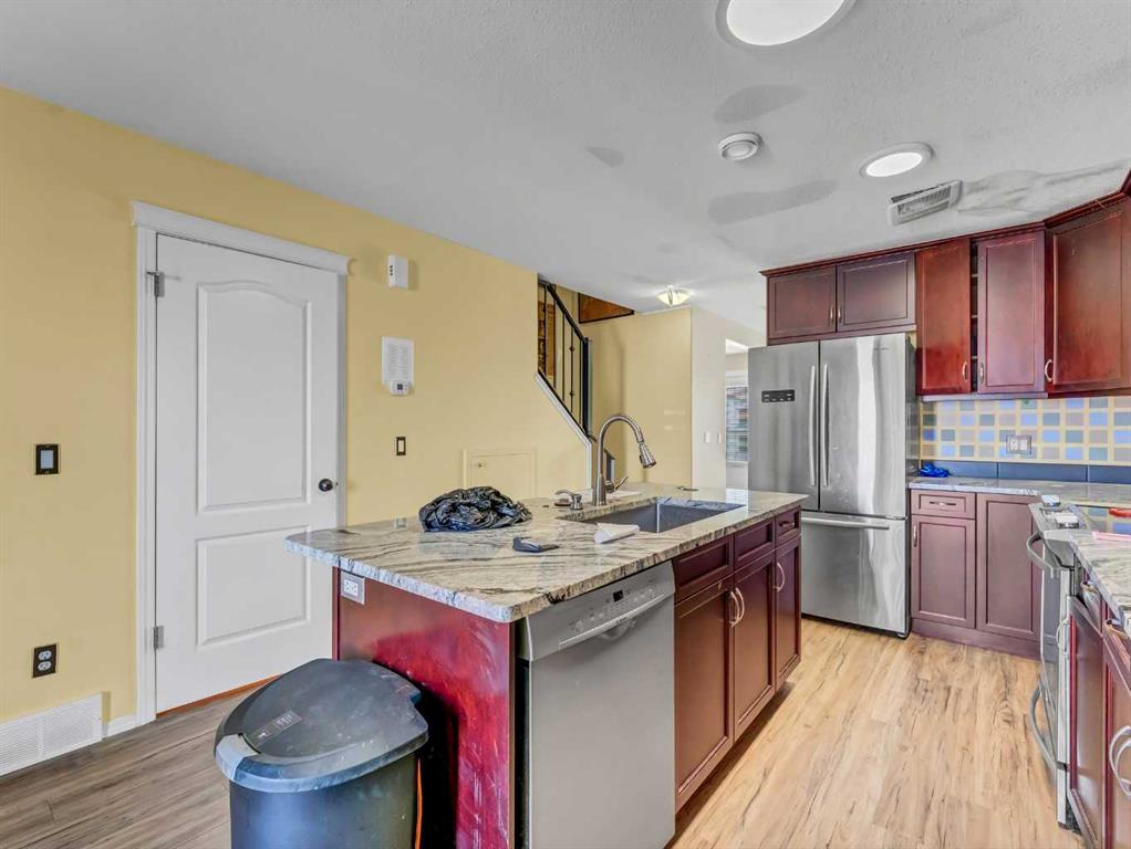 This bright and inviting home features 2 spacious bedrooms and 2 bathrooms, offering a great layout and lovely natural light throughout. The open-concept main living area is perfect for entertaining, highlighted by granite countertops, ample cabinetry, and a functional kitchen that flows seamlessly into the dining and living space. These condos are perfect for first time buyers, downsizers or as a revenue purchase. Enjoy the added convenience of in-suite laundry, making everyday living effortless. Step outside to your private back deck, perfect for morning coffee or evening relaxation, with additional storage space to keep everything organized. Parking is a breeze with your dedicated stall located right out front, providing easy access year-round. Situated in the desirable Northlands Pointe community, this townhome offers modern finishes, practical design, and a welcoming atmosphere — all in a location that’s within walking distance to shopping amenities, path systems, the Big Marble Go Centre, schools and more!