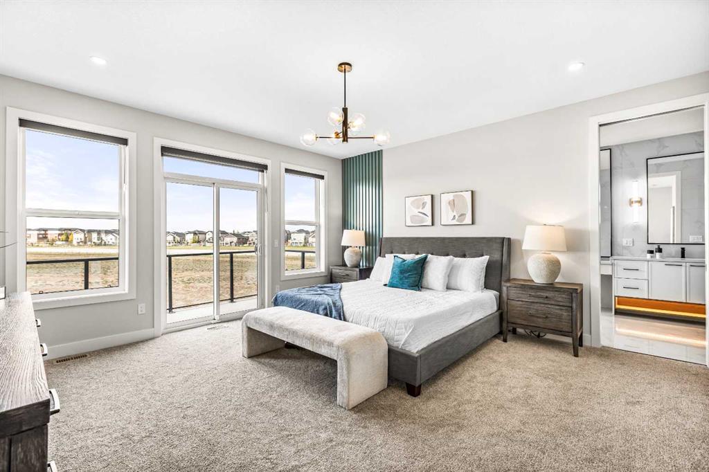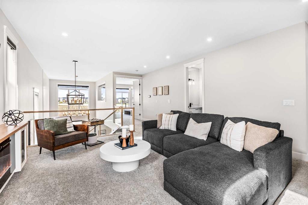Situated in a tranquil lakeside neighborhood, this stunning two-storey show home offers 6 bedrooms, 5 full bathrooms, and a fully developed basement, all set on a premium lot. The main level features soaring 10-foot ceilings, rich hardwood floors, quartz surfaces, a stylish living room with a feature wall, a private den or office, and a dedicated spice kitchen equipped with a gas range, hood fan, fridge, and dishwasher. The upgraded main kitchen is highlighted by a waterfall island and built-in KitchenAid appliances. The open-to-above family room is designed to impress, showcasing a natural gas fireplace and a striking staircase with glass railings and motion-sensor lighting. Upstairs, you’ll find a spacious bonus room with a fireplace, a convenient laundry room with sink, and a luxurious primary suite complete with a 6-piece ensuite and private balcony. Two additional bedrooms share a Jack and Jill bathroom, while a fourth bedroom is paired with a separate full bath. The fully finished basement includes a separate side entrance, a large recreation room with fireplace, a gym area, wet bar, two bedrooms, and a full bathroom. Completing the home is a triple-car garage, an extended exposed aggregate driveway, and a glass-railed deck—perfectly blending style, space, and functionality.