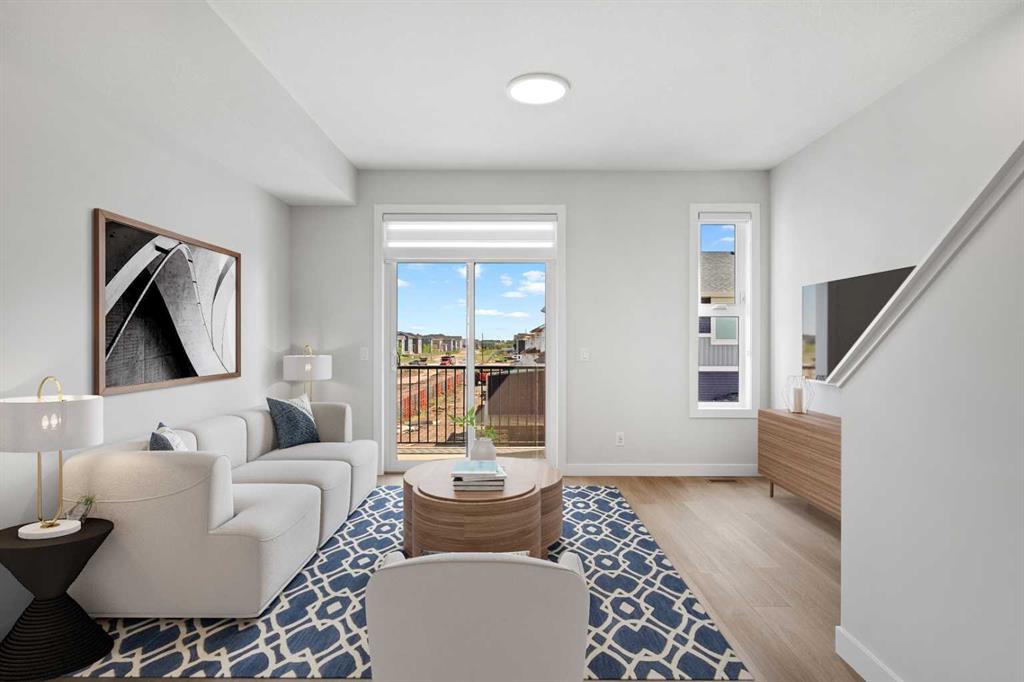 Welcome to Chelsea Court, where the “Monarch” townhome by Trico Homes brings together modern design, comfort, and functionality in one stylish package. This pre-construction home features three bedrooms, two and a half bathrooms, and more than 1,200 square feet of thoughtfully designed living space. The entry level includes a two-car tandem garage, with the option to add a versatile flex room and full bathroom. This additional space is ideal for a guest suite, home office, or hobby area, allowing you to tailor the home to your needs. On the main floor, nine-foot ceilings and an open-concept layout create a bright and welcoming atmosphere. The kitchen is appointed with quartz countertops and stainless steel appliances, combining style and practicality for both everyday living and entertaining. From the main living area, you can step onto the private front deck overlooking green space and pathways, offering a peaceful setting for your morning coffee or evening relaxation. Upstairs, the owner’s suite serves as a private retreat, complete with a spacious walk-in closet and a four-piece ensuite bathroom. Two additional bedrooms, a full bathroom, and a conveniently located laundry area complete the upper level, providing comfort and functionality for the entire household. Chelsea is a vibrant new community located on the western edge of Chestermere and thoughtfully planned with families in mind. Residents enjoy more than nine acres of park space, three storm ponds, a natural wetland eco-park, and interconnected pathways that make outdoor living easily accessible. The neighborhood features a mix of townhomes, duplexes, and single-family homes, creating a welcoming and diverse streetscape. Everyday conveniences, including schools, shopping, and recreational facilities, are just minutes away. For those who love the outdoors, Chestermere Lake offers year-round activities and scenic views close to home. This is your opportunity to become part of a growing community. Schedule your visit to Chelsea Court today and experience where modern living meets natural charm. *Measurements are pulled from builder drawings; ground level measurements added to main floor*