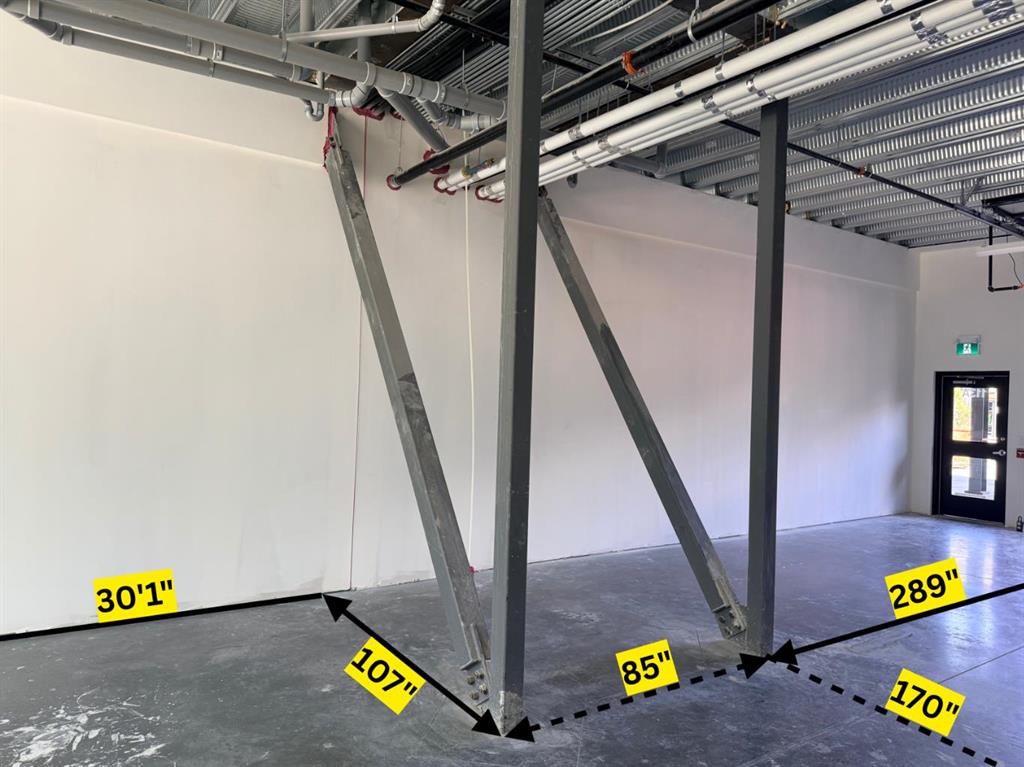 Excellent leasing opportunity in Canmore’s Transition Industrial District with high traffic exposure. Unit 31 offers approximately 1,388.5 sq. ft. (129 m²) and is ideal for light manufacturing, contractor services, retail/wholesale operations, studio space, office, veterinary clinic, and other compatible commercial uses subject to Town approval. The unit features 12’7” clear ceiling height, durable steel/concrete construction, a 10’ x 10’ overhead door, an independent entrance, aluminum storefront windows, and a 4” concrete floor. The building will be fully sprinklered and includes emergency lighting, rough-ins for HVAC and plumbing, and a dedicated 225 amp 120/208 electrical panel with an independent meter. Convenient access with street parking, bicycle parking, and additional on-site parking available. Great opportunity for businesses looking to establish themselves in one of Canmore’s growing commercial areas.