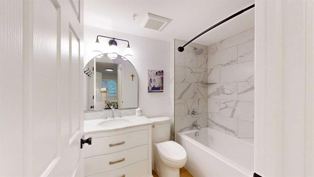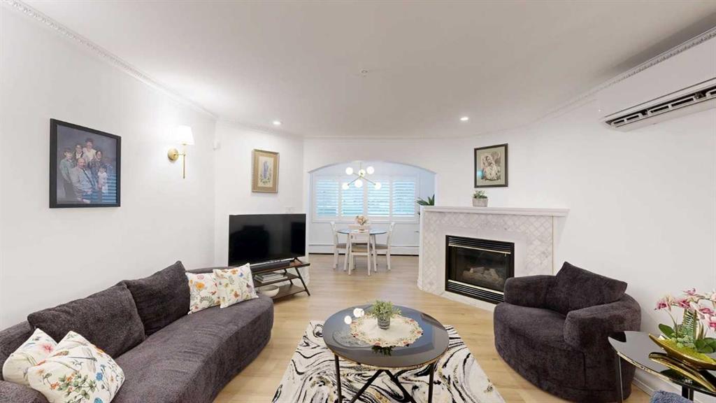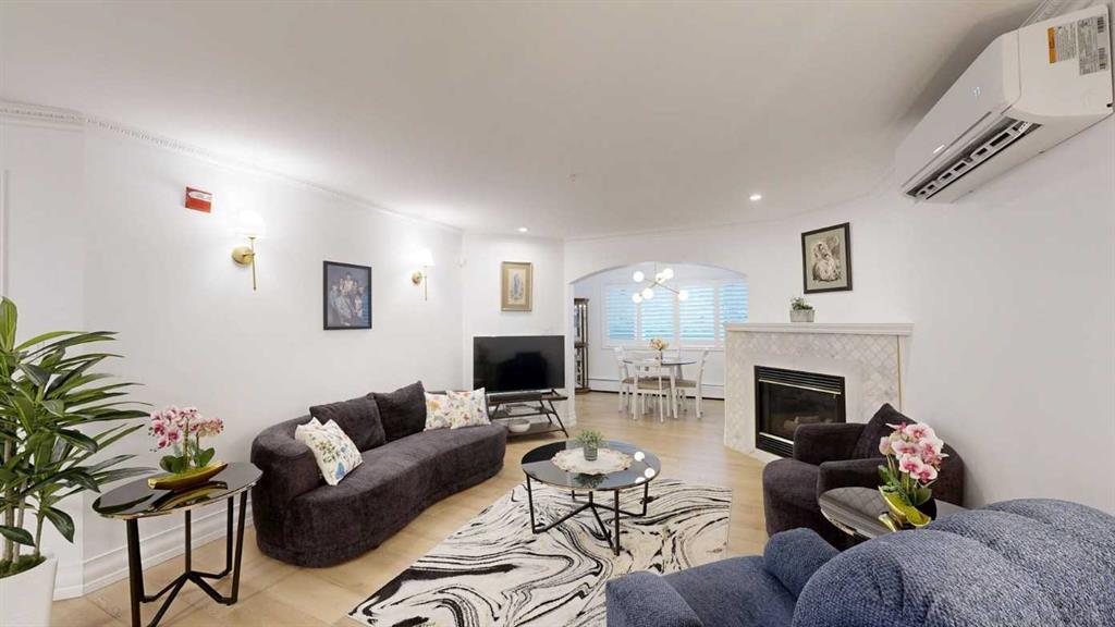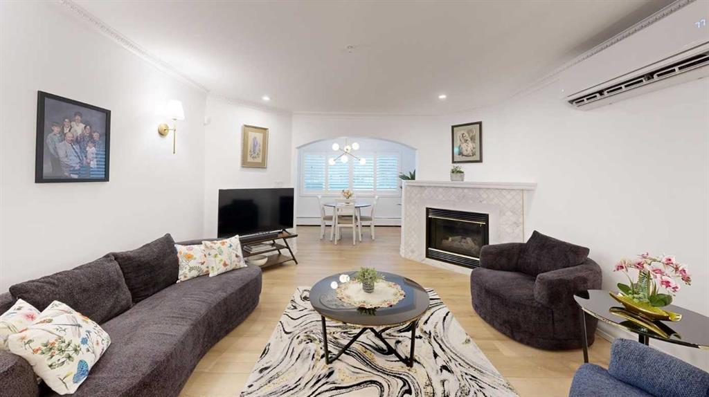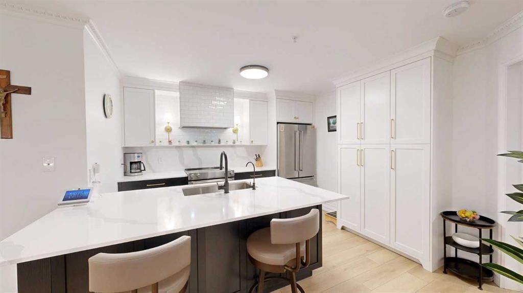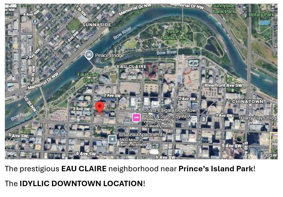 *** OPEN HOUSE - SUNDAY, APRIL 26th, 2 to 4 pm *** Welcome to a contemporary, modern and newly renovated EXECUTIVE ORNATE condo located in the sought after and desirable Eau Claire neighborhood. This spacious ground-floor unit offers an exceptional blend of ultra modern convenience and urban lifestyle, right in the center of Calgary’s energetic downtown. Inside you will find an open-concept living space filled with an abundance of south facing natural light, accompanied by high ceilings and large windows. The well-appointed kitchen features sleek white custom kitchen cabinetry, quartz countertops and custom backsplash, newer stainless-steel appliances, and a scintillating receptive island, excellent for casual dining and entertaining. This unit includes a spacious primary bedroom with ample closet space and a stylish bathroom featuring ultra modern fixtures. Additional highlights include newer plumbing, and upscale lighting. Smooth ceilings, crown molding, new custom high-end shutters and a newer air conditioning unit. Pipe drawer vanities with an updated fireplace surround with mantle, newer stacked LG washer and dryer, and updated closet interiors. Charming character trim work, in-suite laundry, ample storage, and secure underground titled parking with storage. This building offers amenities such as a party room, visitor parking and secured underground parking. Located only steps away from the Bow River pathways, Prince’s Island Park, fine dining, shopping, and entertainment. This property is perfect for those who want to enjoy everything downtown Calgary has to offer. Whether you’re a young professional, downsizer, EXECUTIVE or investor, this condo offers a prime location with a blend of convenience and luxury. It also provides an excellent balance between work and lifestyle. The property’s central location has quick access to major roadways, allowing seamless connectivity across the city. This is a beautifully, fully updated, and very stylish EXECUTIVE unit for the inner-city lifestyle!