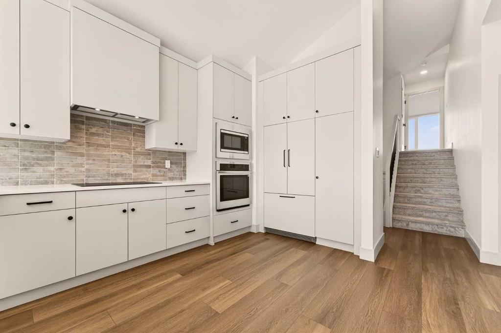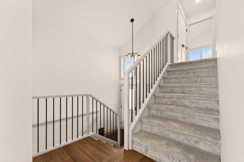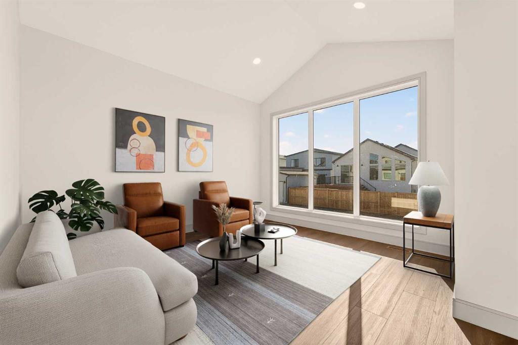 Welcome to the Glenbarr bi-level by Stranville Living Master Builder, located in the exciting new community of Blackwolf, just a short two-minute walk from Legacy Park — and when I say close, I mean you can grab your skates or pickleball paddle and be there in no time. Legacy Park truly is one of the best outdoor spaces in Lethbridge, featuring an outdoor skating rink, pickleball and basketball courts, a skate park, spray park, and beautiful walking paths that wrap around the scenic pond. Living here means your weekends practically plan themselves. Step inside and you’re immediately greeted by the soaring vaulted ceilings that make this home feel bright, open, and far larger than you’d expect. The kitchen is a standout and showcases Stranville’s signature finish quality, complete with a paneled Fisher & Paykel fridge, paneled dishwasher, sleek induction cooktop, built-in oven and microwave, quartz countertops, slow-close cabinetry, and convenient bar seating. It’s modern, clean, and thoughtfully designed for both everyday living and entertaining. Just off the kitchen is the dining area, positioned perfectly beside sliding glass doors that lead out to your future deck — an ideal extension of your living space during the warmer months. The adjacent living room features an oversized window that floods the main floor with natural light, creating a warm and inviting atmosphere. This level also includes two generously sized bedrooms along with a well-appointed four-piece bathroom, offering flexibility for family, guests, or a home office setup. Upstairs, you’ll find the laundry conveniently located near the private primary retreat. The primary bedroom continues the vaulted ceiling design and features another oversized window, enhancing the sense of space and light. The ensuite is finished with dual vanities, a walk-in shower, and an impressive 11-foot-long walk-in closet that provides plenty of storage without compromise. With alley access at the rear and Stranville’s elevated finish standards throughout, this brand-new home delivers the perfect balance of thoughtful design, modern style, and an unbeatable location in one of Lethbridge’s most recreation-focused communities. This home is virtually staged.