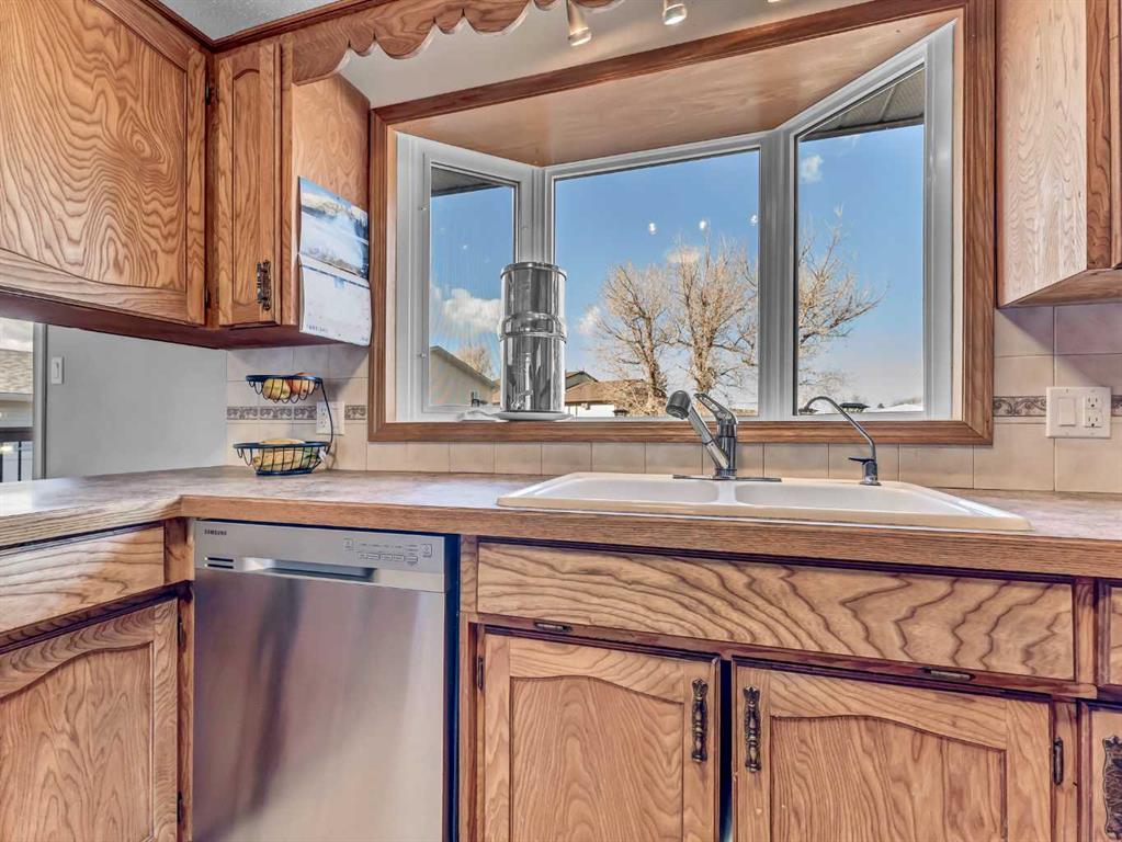 Welcome to this well-laid-out 1981 split level home, situated on a generous lot in the Town of Bow Island, close to the golf course and waterpark! Offering space, functionality and future potential, this home is ideal for the growing family. The two main floors, combined offer 1517 sq. ft of comfortable living space, featuring a bright living room as well as an inviting family room, complete with fireplace and walk-out to the backyard. The kitchen and dining areas flow nicely, creating a practical layout. The upper level measures 694 sq. ft. providing separation and privacy from the main living areas and where you'll find three of the home's four bedrooms, including a spacious primary bedroom with walk-in closet and private three-piece ensuite. The lowest level is undeveloped, offering excellent potential to customize additional living space, bedrooms or recreation areas to suit your needs. Additional highlights include an attached 21' x 21' garage, right off the practical mudroom-style entrance, perfect for busy households and the large laundry room, with plenty of room to hold your freezers and extra fridge. This home has lots to offer, come take a look to appreciate it yourself.