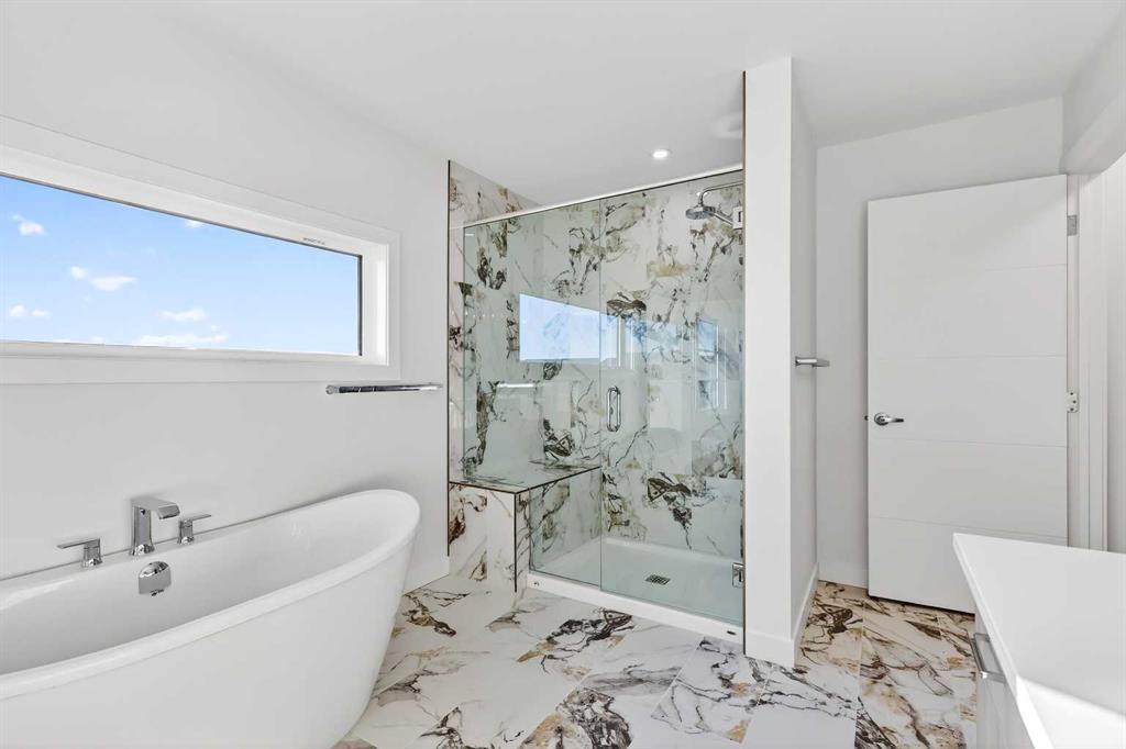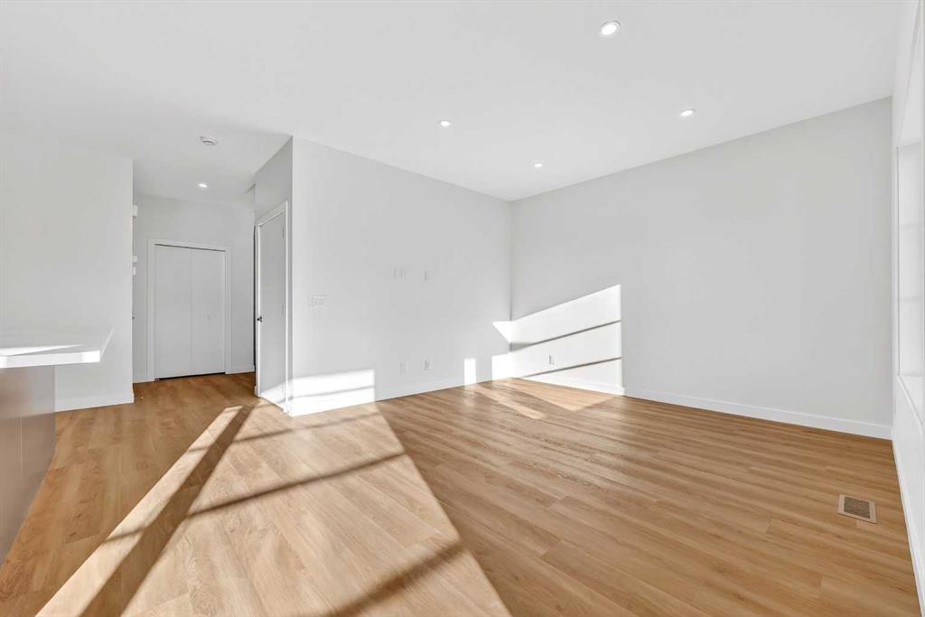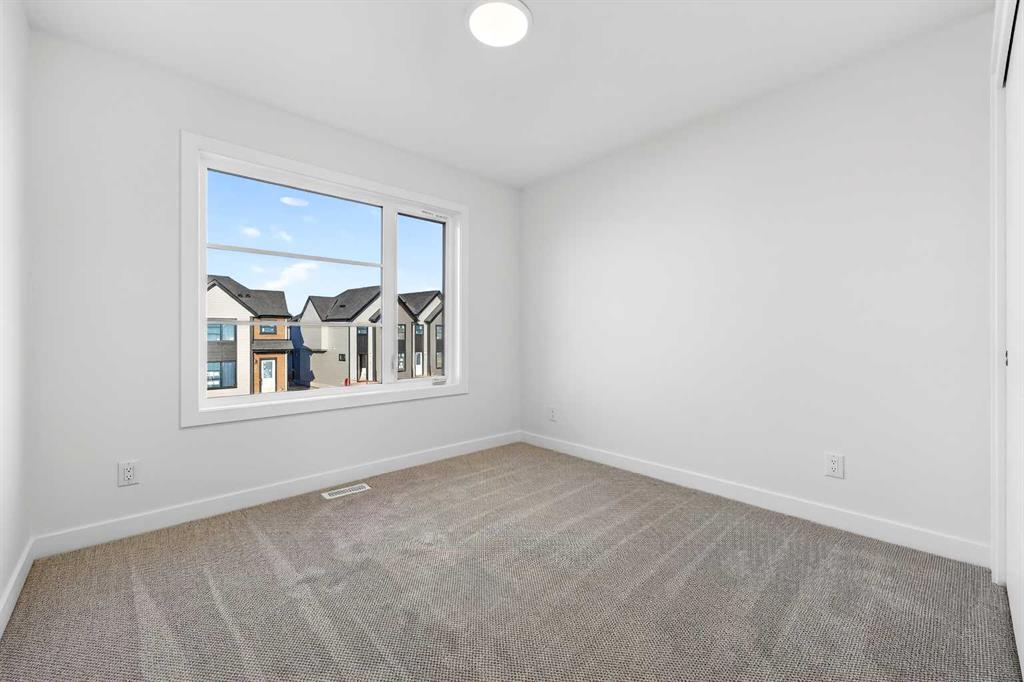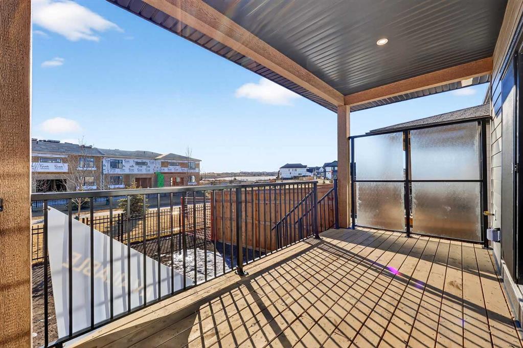 Experience the height of sophisticated living in this highly coveted luxury townhome, where a generous floor plan meets modern comfort and refined finishes. Proudly presented by StreetSide – this thoughtfully designed unit features 3 bedrooms, 2.5 bathrooms, and a front attached double car garage. The heart of the home is a spacious kitchen with a large central island, polished white quartz countertops, upgraded stainless steel appliances, and elegant sliding French patio doors that open to your covered deck area—ideal for both everyday living and entertaining. Light floods into the living room with ease through the large window, while luxury vinyl plank flooring flows throughout the main floor living areas, and carpeted stairs leading to the upper level and bedrooms provide extra warmth. The primary ensuite is a private sanctuary, complete with tile flooring, double sinks, a freestanding soaker tub, and an oversized tile-and-glass shower delivering spa-inspired comfort at home. The unfinished basement with roughed-in plumbing provides future potential for additional living space tailored to your needs. Professional landscaping and fencing complete your new home. Ideally located in the award-winning community of Harmony, residents enjoy Mickelson National Golf Course, private lake amenities, scenic walking and biking trails, and a wellness-focused lifestyle—just a shorty drive from Calgary city minutes and 45 minutes from the Rocky Mountains, where nature and convenience come together effortlessly
