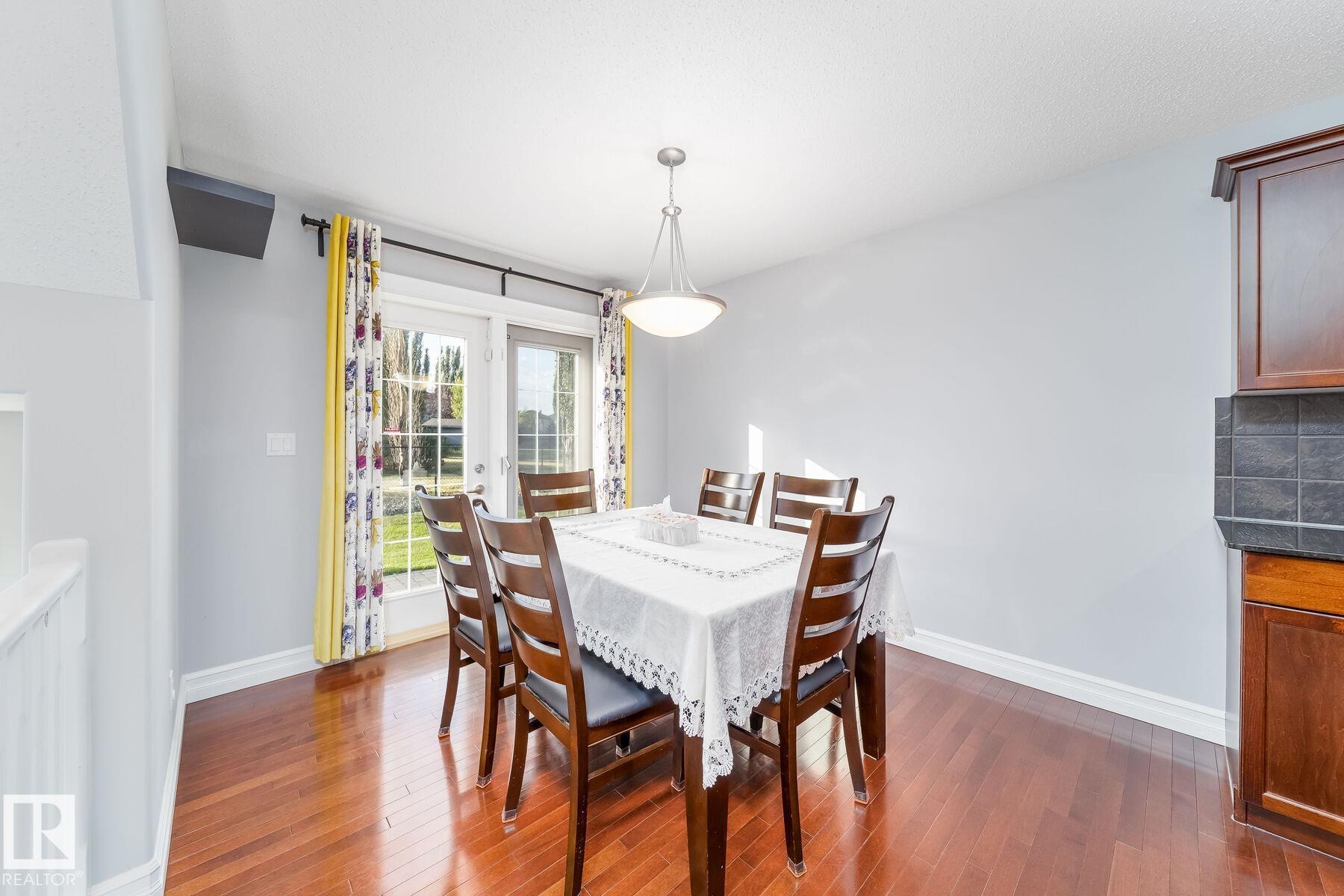 Truly move-in ready Air-Conditioned home, the rear walking path provides easy access to local schools. This beautifully maintained 4-bedroom, 3.5-bath 2 storey sits on a large pie lot. The kitchen and bathrooms boast granite countertops, and a bright bonus room upstairs, convenient main floor laundry, a walk-through pantry with upgraded shelving. Additional highlights: 2025 NEW ROOF, 2025 new stove, an extended and insulated garage, commercial-grade Maytag washer and dryer with steam feature on pedestals, a Samsung stainless steel side-by-side refrigerator with lower freezer and ice/water dispenser. The mud room features built-in shoe storage, the home is also equipped with a security system. The fully finished basement offers both family and media rooms, while outside you’ll find a 10’ x 8’ no-fade garden shed, plus a natural gas hookup for the professionally landscaped backyard with stone patio—perfect for summer BBQ with friends and family.