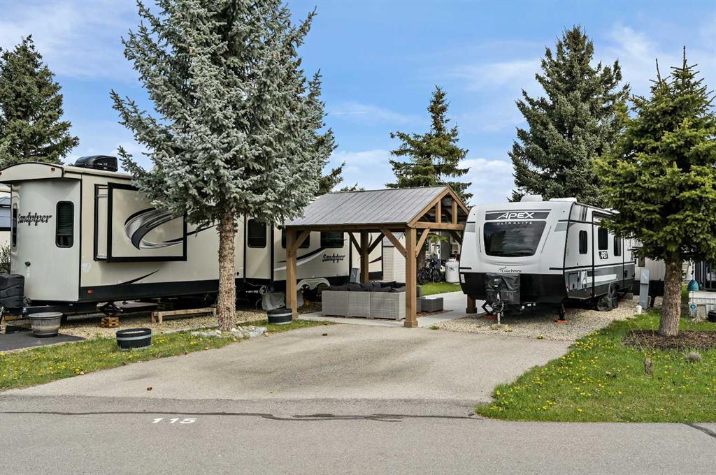Welcome to Country Lane Estates, a gated and secure seasonal RV community just 15 minutes south of Calgary. Whether you're a snowbird, weekender, or a family seeking a peaceful spring and summer retreat, this highly sought-after community offers the perfect blend of relaxation, recreation, and convenience. This prime lot is ideally situated near the clubhouse, pool, playground, and park—placing you right at the center of all the amenities while still offering a private and serene space to unwind. The property comes fully move-in ready with a 2021 Coachmen Apex 28-foot trailer in pristine condition, providing modern comfort and functionality. The concrete pad ensures clean, low-maintenance outdoor living, while a gazebo offers the perfect shaded space for relaxing or entertaining. A storage shed on the lot adds both convenience and versatility—ideal for storing tools, bikes, or hobby gear. The landscaping has been thoughtfully designed for minimal upkeep, giving you more time to enjoy the season without the stress of maintenance. Full RV hookups are in place. This is a dog-friendly community with riverside walking paths and an off-leash dog park, making it an ideal spot for pet owners. The welcoming atmosphere is further enhanced by a vibrant social calendar, including weekly events and activities that bring residents together. Located just minutes from Okotoks and High River, and with easy highway access to Calgary, this property offers the best of both worlds—peaceful country living with the convenience of nearby city amenities. Whether you're seeking a weekend escape or a full-season getaway, this upgraded lot with trailer and thoughtful outdoor features is ready for you to enjoy from the moment you arrive. Don’t miss this rare opportunity to own a turn-key retreat in one of southern Alberta’s most desirable seasonal RV communities.