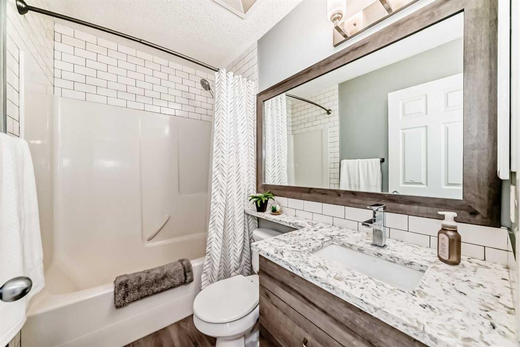 Hello Gorgeous, Welcome to a rare treasure in Coventry Hills! Tucked away on a quiet street, this fully renovated home is an absolute must-see. Step in from the large covered front porch to a spacious entry and an open-concept main floor featuring a stunning custom walnut kitchen—complete with granite countertops, upgraded appliances, pantry pullouts, and island garbage pullouts—not the calibre of kitchen typically found at this price point. The bright dining area is filled with natural light from oversized windows.Upstairs offers a spacious primary retreat with built-in closet, a beautifully remodeled main bath, convenient upper laundry with storage, and two additional bedrooms. The renovated main-floor half bath leads to a fully developed basement with plush carpet, a large media room with in-ceiling surround sound, built-in desk, and ample storage. Enjoy the cedar deck with gas BBQ hookup, ambient lighting, and downtown views. The insulated garage boasts 10’ ceilings, custom cabinetry, 60A 220V service, and a Reznor heater. With A/C, RV parking, central vac, under-deck storage, and unbeatable proximity to schools, parks, and shopping—this home truly has it all.