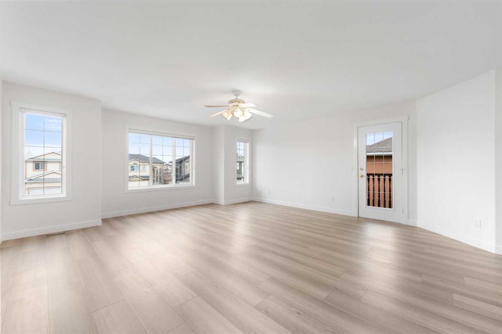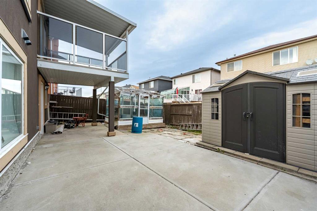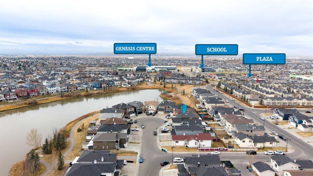 Welcome to this beautifully updated 2-storey home located on a quiet street in Taradale, featuring a WALKOUT BASEMENT SUITE. The home offers an inviting FRONT PORCH and a double attached garage. Step into the bright living room with soaring ceilings, seamlessly flowing into the dining area. The modern kitchen is a chef’s dream with a Kitchen island, GAS RANGE, and pantry. The adjacent family room boasts a cozy fireplace and access to a balcony—perfect for entertaining or relaxing. A den/bedroom and a full 4-piece bathroom completes the main floor. The upper level features a HUGE MASTER BEDROOM with a walk-in closet and luxurious 5-piece ensuite. Three additional generous sized bedrooms share a 4-piece full bath. All the bedrooms have built in closet organizer. Updated vinyl plank flooring, lighting fixtures, and fresh paint gives the home a contemporary feel throughout. The ILLEGAL BASEMENT SUITE offers 2 spacious bedrooms, a full kitchen, a huge living/rec room, and a 4-piece bath—ideal for extended family or rental income. Additional features include, Roof replaced in 2025, Stucco exterior with cement walkway around the home and Low-maintenance backyard with a garden shed and a greenhouse. STEPS AWAY FROM A BEAUTIFUL POND and community amenities such as the GENESIS CENTRE (Recreation Centre with swimming pool and sports facilities) and PUBLIC LIBRARY. Walking distance to the SADDLE TOWNE CIRCLE SHOPPING COMPLEX, Saddle Towne LRT station, and the nearest bus stop is approximately 1 minute away. Close to all levels of schools, including NELSON MANDELA HIGH SCHOOL. This home perfectly combines modern updates, functional spaces, and an unbeatable location—don’t miss out!